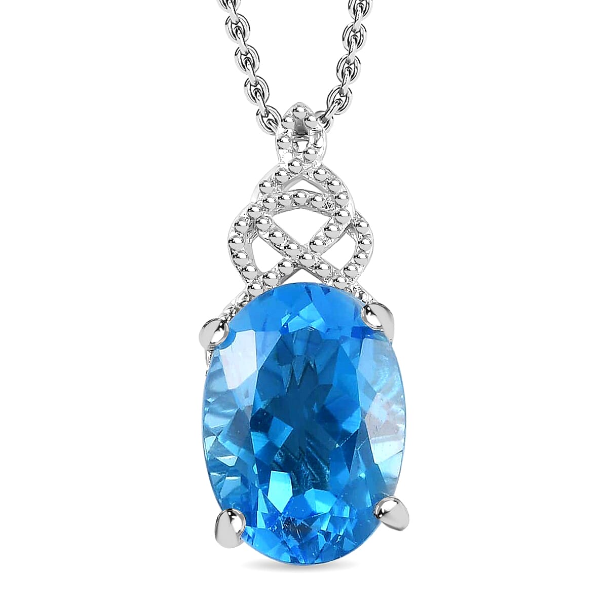 Blue Topaz Solitaire Pendant Necklace 20 Inches in Platinum Over Sterling Silver 7.00 ctw