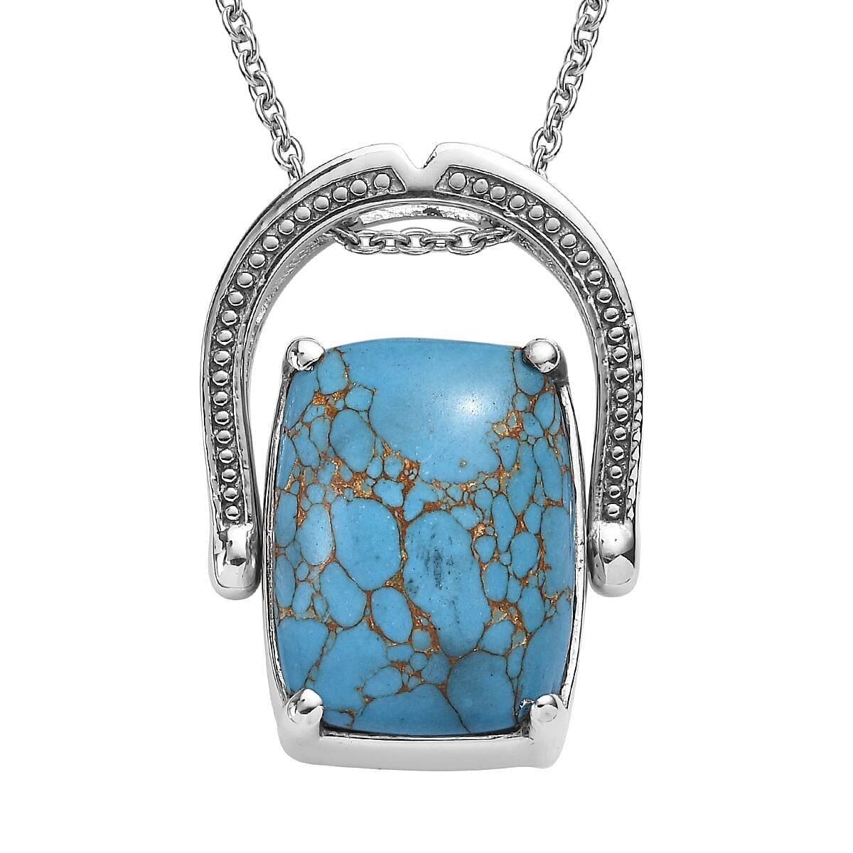 Blue Turquoise 12.50 ctw Convertible Ring (Size 6.0) or Pendant Necklace 20 Inches in Stainless Steel