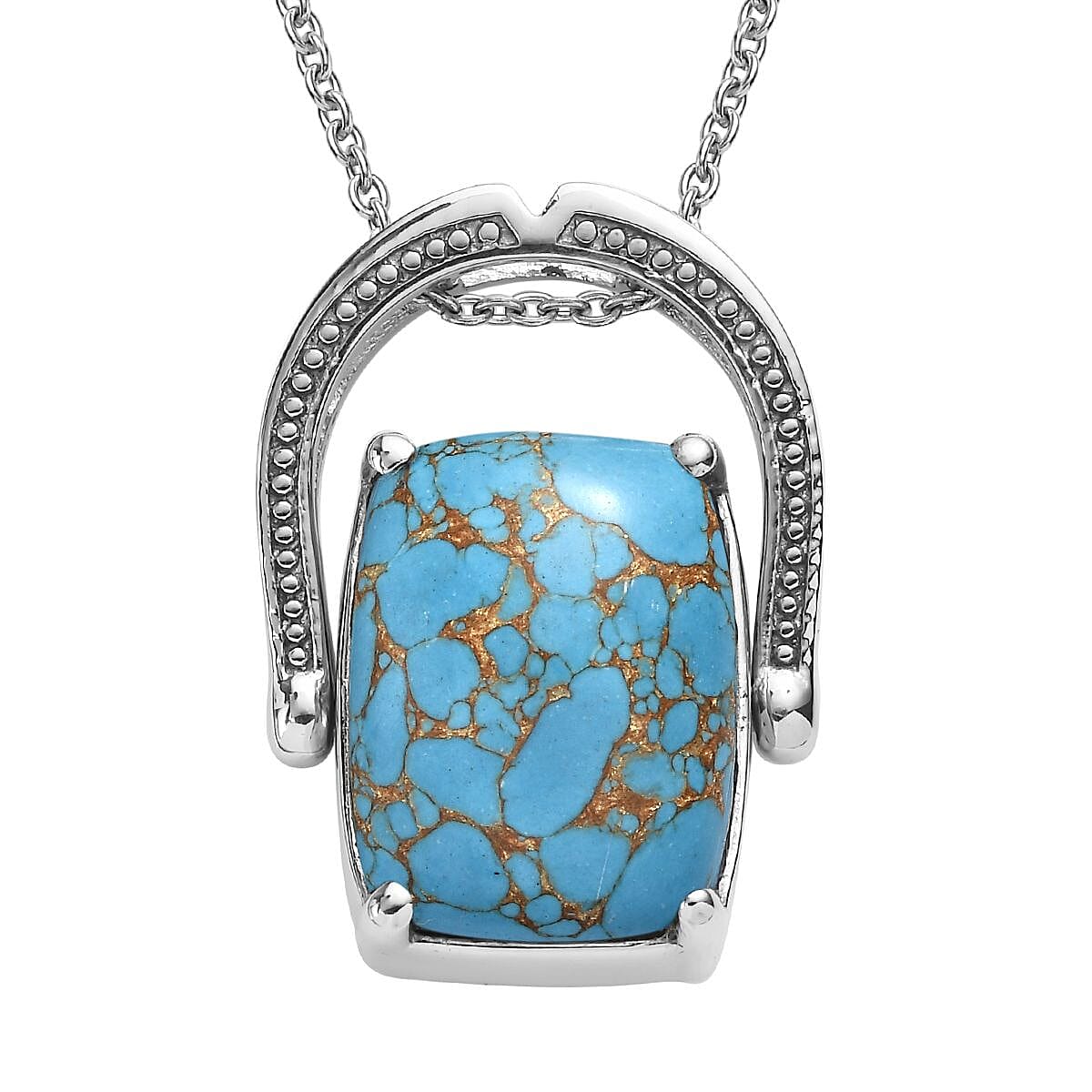 Blue Turquoise Convertible Ring (Size 8.0) or Pendant Necklace (20 Inches) in Stainless Steel 12.50 ctw