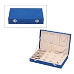 Blue Velvet Jewelry Box with Anti Tarnish Lining & Lock, Anti Tarnish Jewelry Case, Jewelry Organizer, Jewelry Storage Box (8 Necklace Hooks, 8 Earrings/Pendant Sections and 10 Rings Slots)