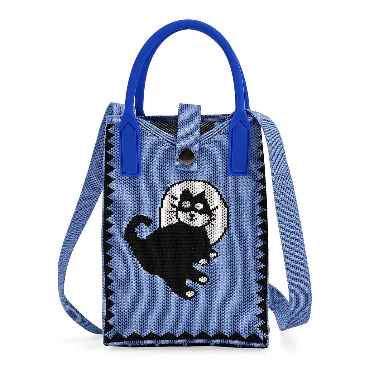 Blue with Black Cat Print Polyester Crossbody Cellphone Bag