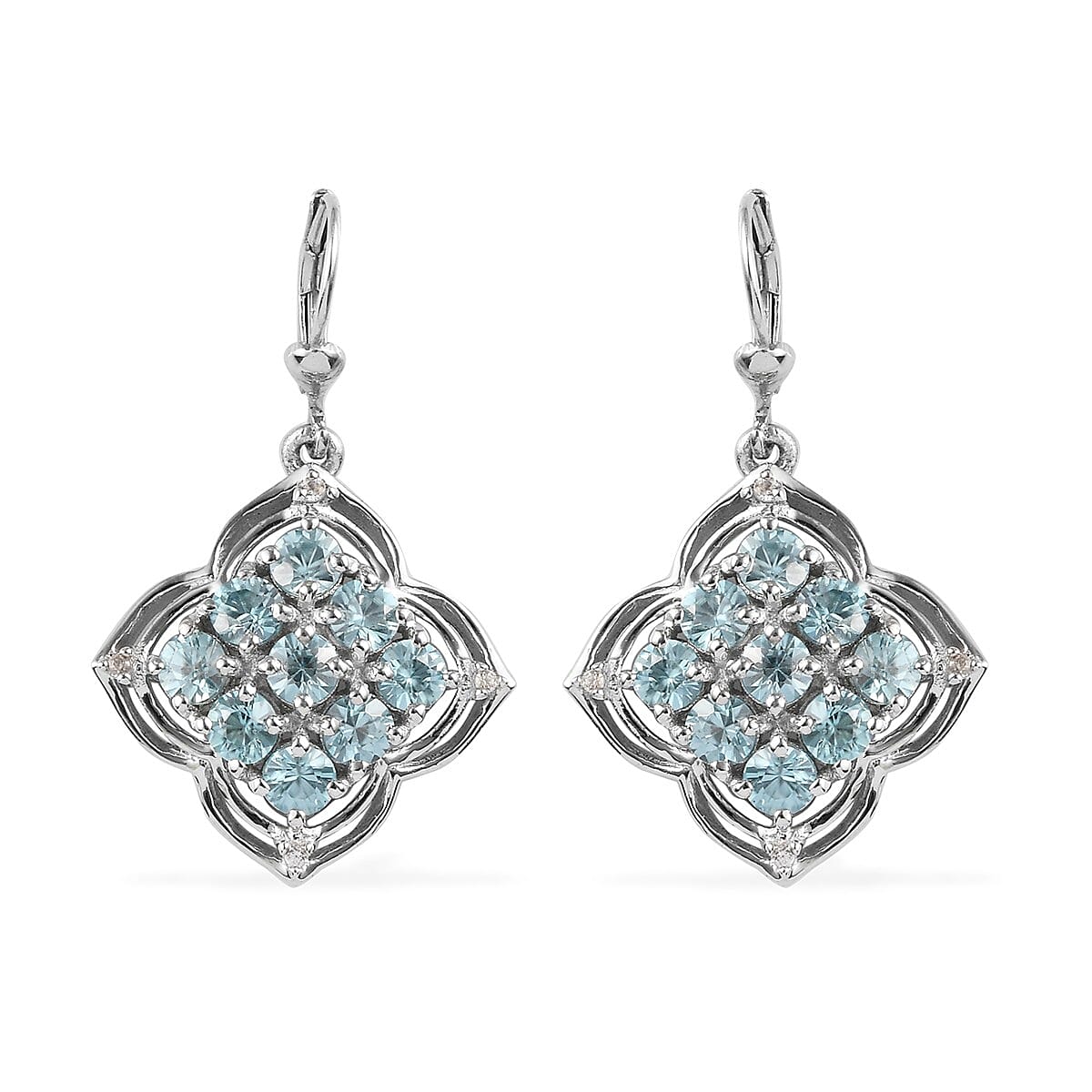 Blue Zircon and Zircon Earrings in Platinum Over Sterling Silver 6.70 ctw