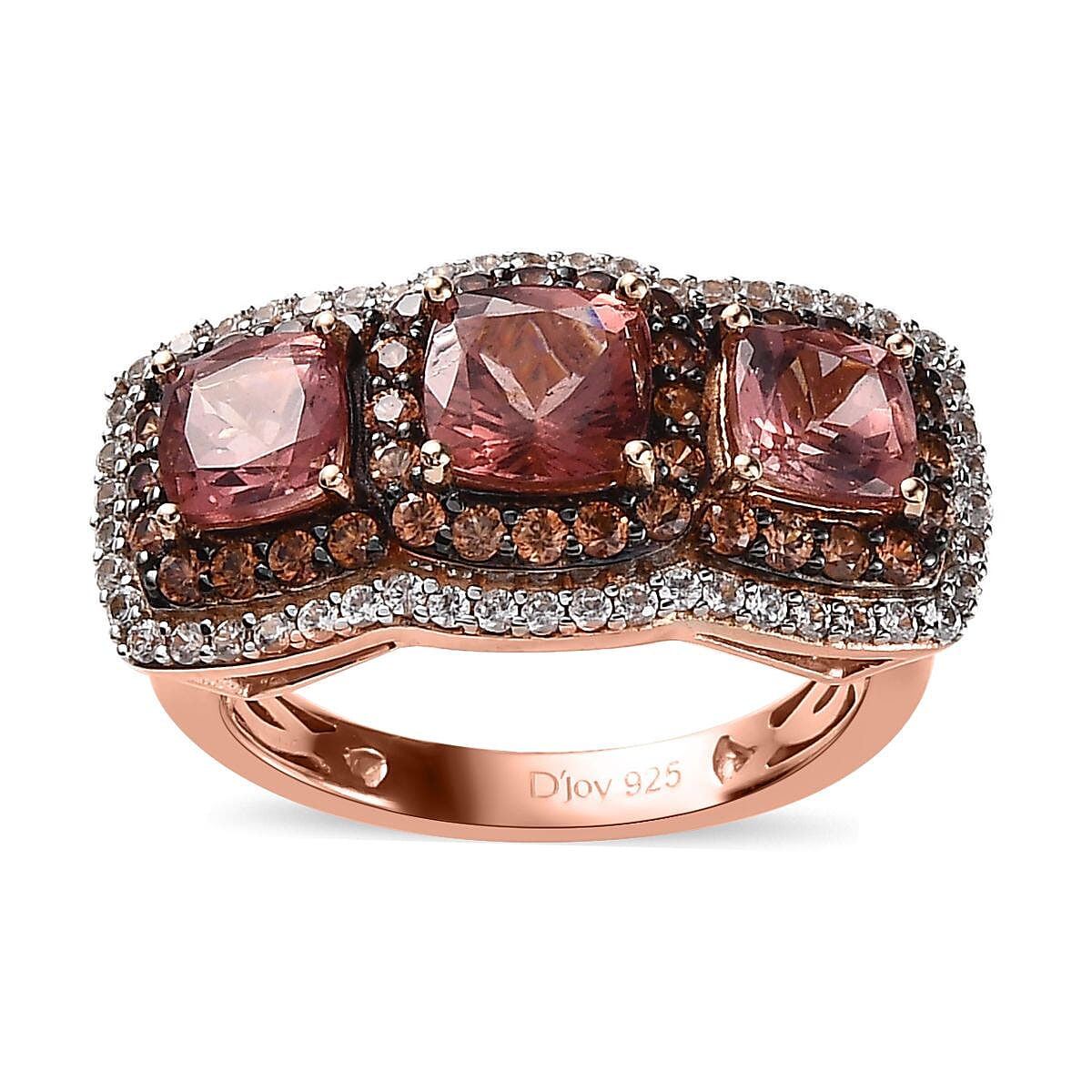 Blush Apatite, Brown and White Zircon Ring in Vermeil Rose Gold Over Sterling Silver (Size 6.0) 3.60 ctw