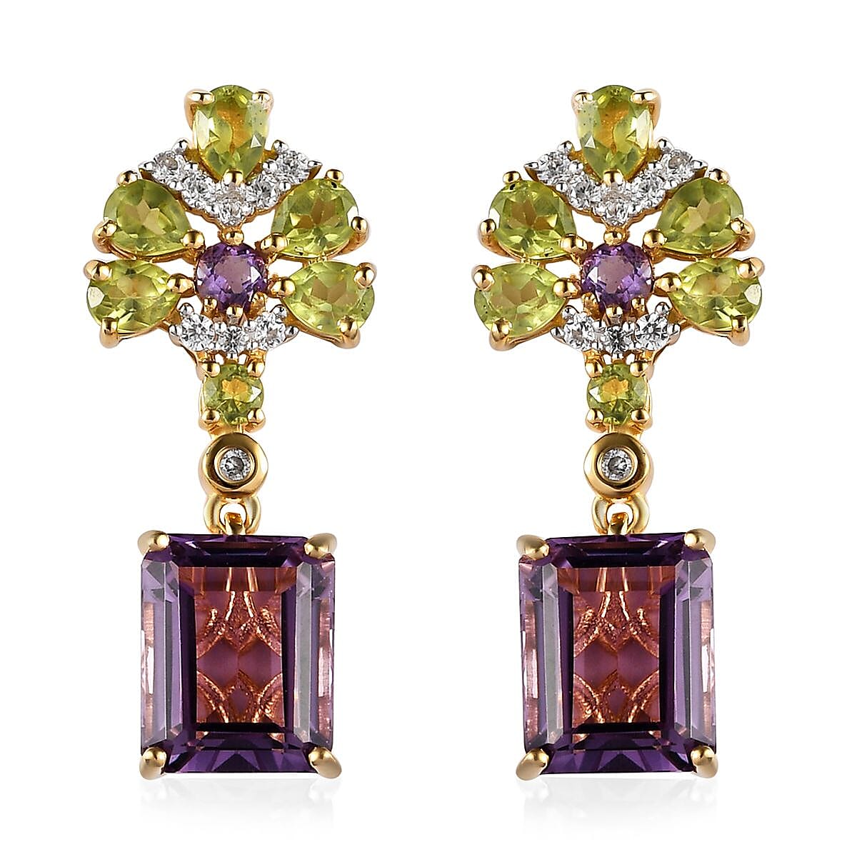 Bolivian Amethyst and Multi Gemstone Dangling Floral Earrings in Vermeil Yellow Gold Over Sterling Silver 9.10 ctw
