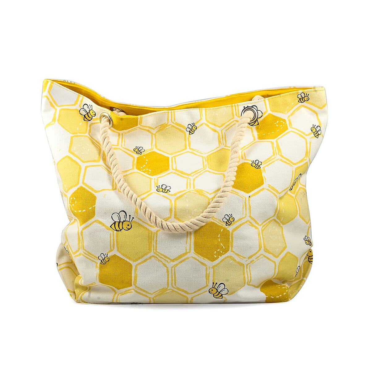 Boston International White & Yellow Honeycomb Pattern Canvas Tote Bag