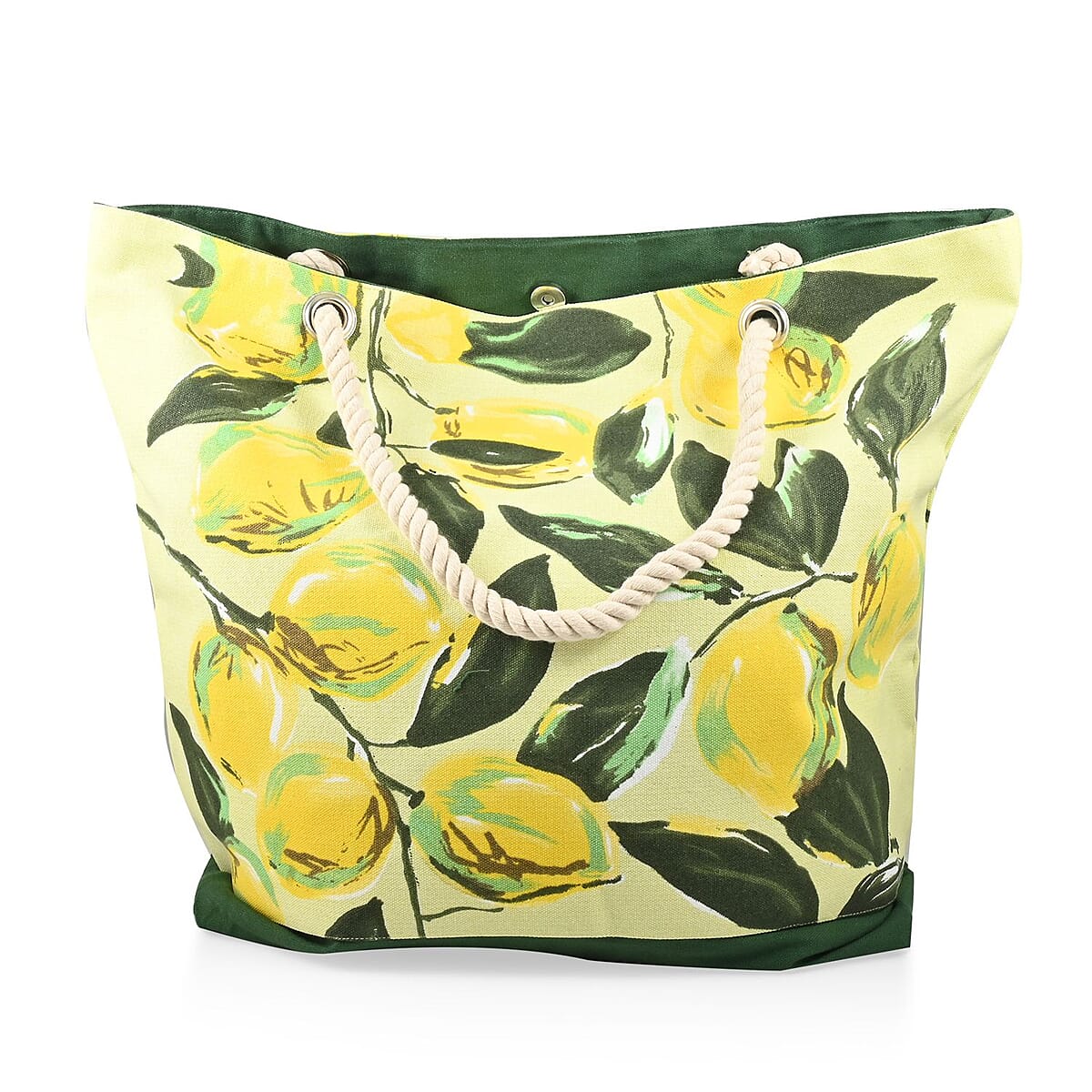 Boston International Yellow & Green Lemon Pattern Canvas Tote Bag