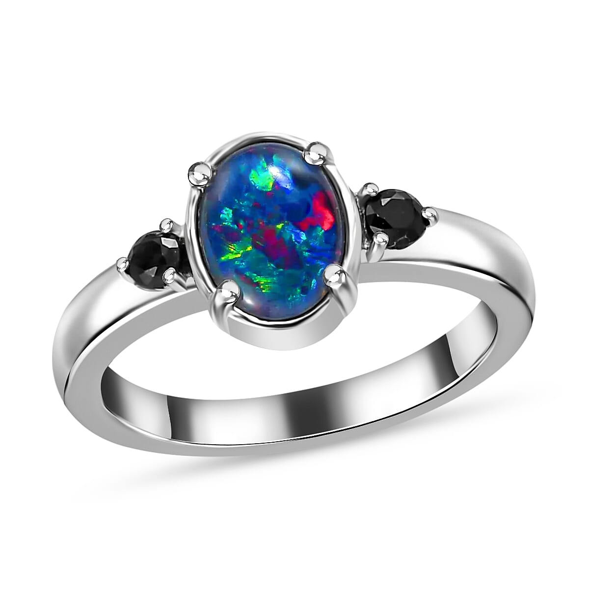 Boulder Opal Triplet and Midnight Sapphire Ring in Stainless Steel (Size 10.0) 1.10 ctw