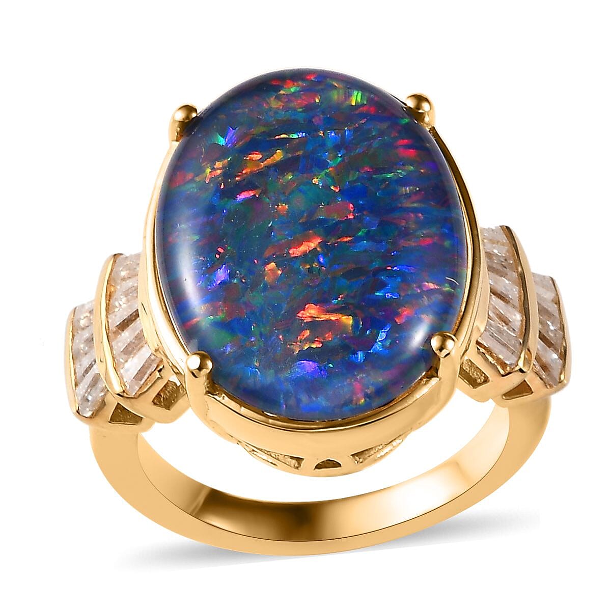 Boulder Opal Triplet and Moissanite Ring in Vermeil Yellow Gold Over Sterling Silver (Size 5.0) 7.15 ctw