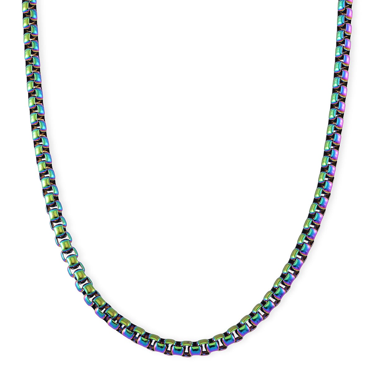 Box Chain Necklace in ION Plated Rainbow Stainless Steel 22-24 Inches