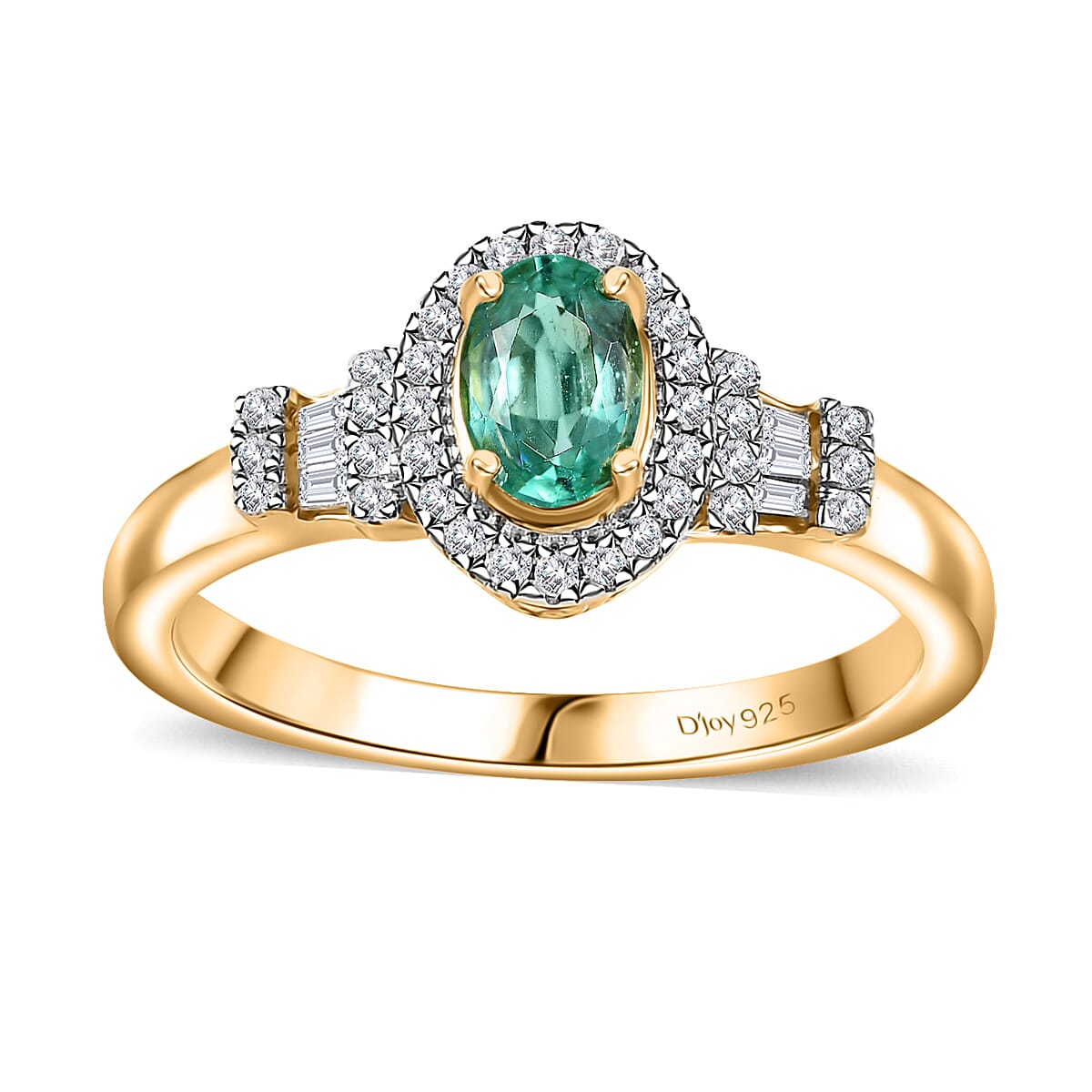 Boyaca Colombian Emerald and Diamond 0.60 ctw Halo Ring in 18K Vermeil Yellow Gold Over Sterling Silver (Size 7.0)