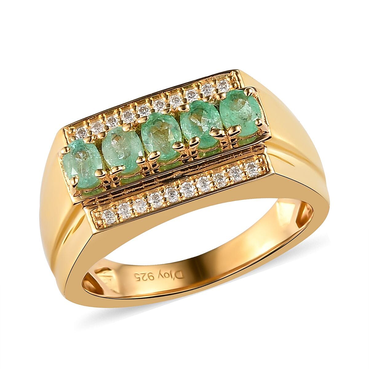 Boyaca Colombian Emerald and Moissanite Men's Ring in Vermeil Yellow Gold Over Sterling Silver (Size 10.0) 1.25 ctw