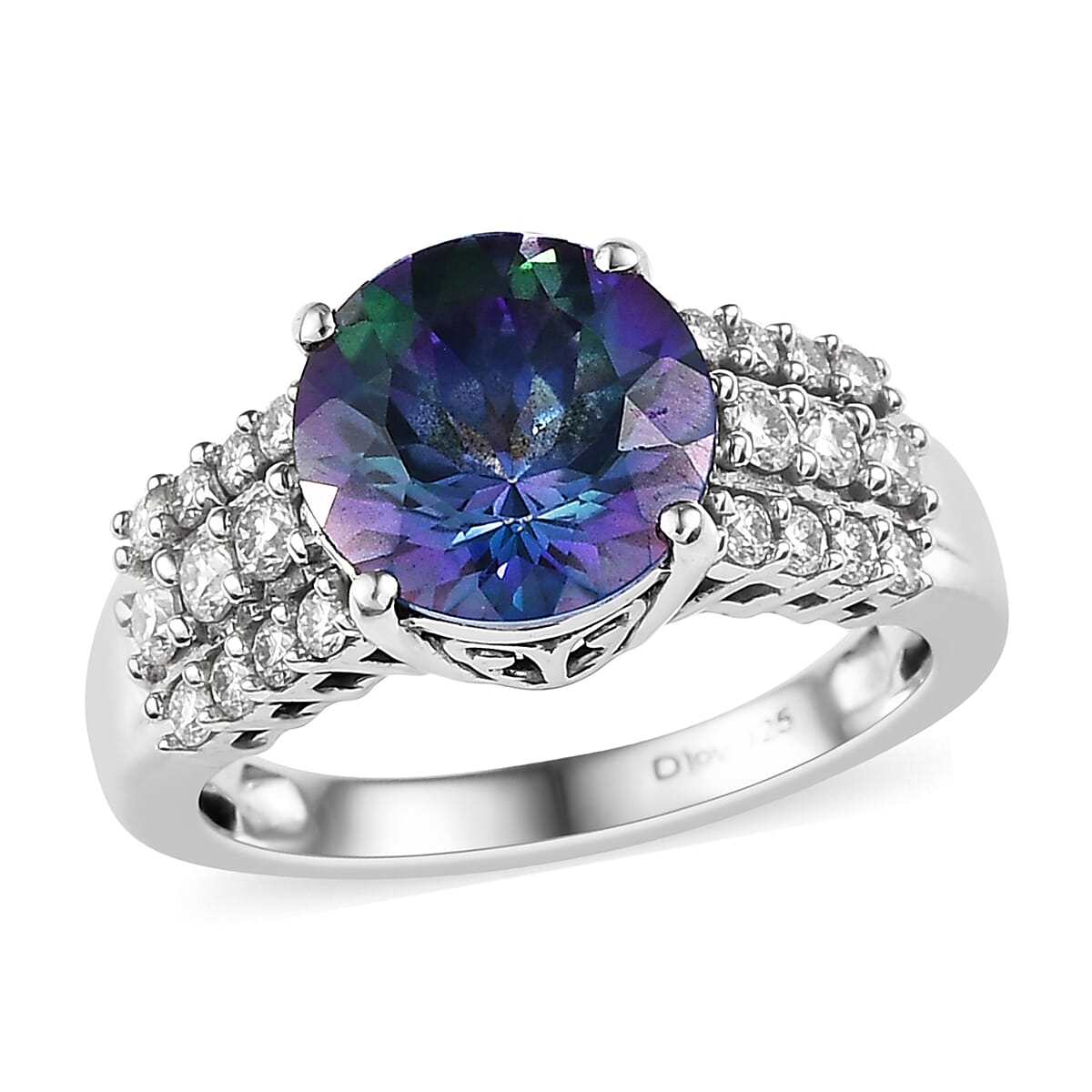 Brazilian Blue Petalite and Moissanite Ring in Platinum Over Sterling Silver 2.65 ctw
