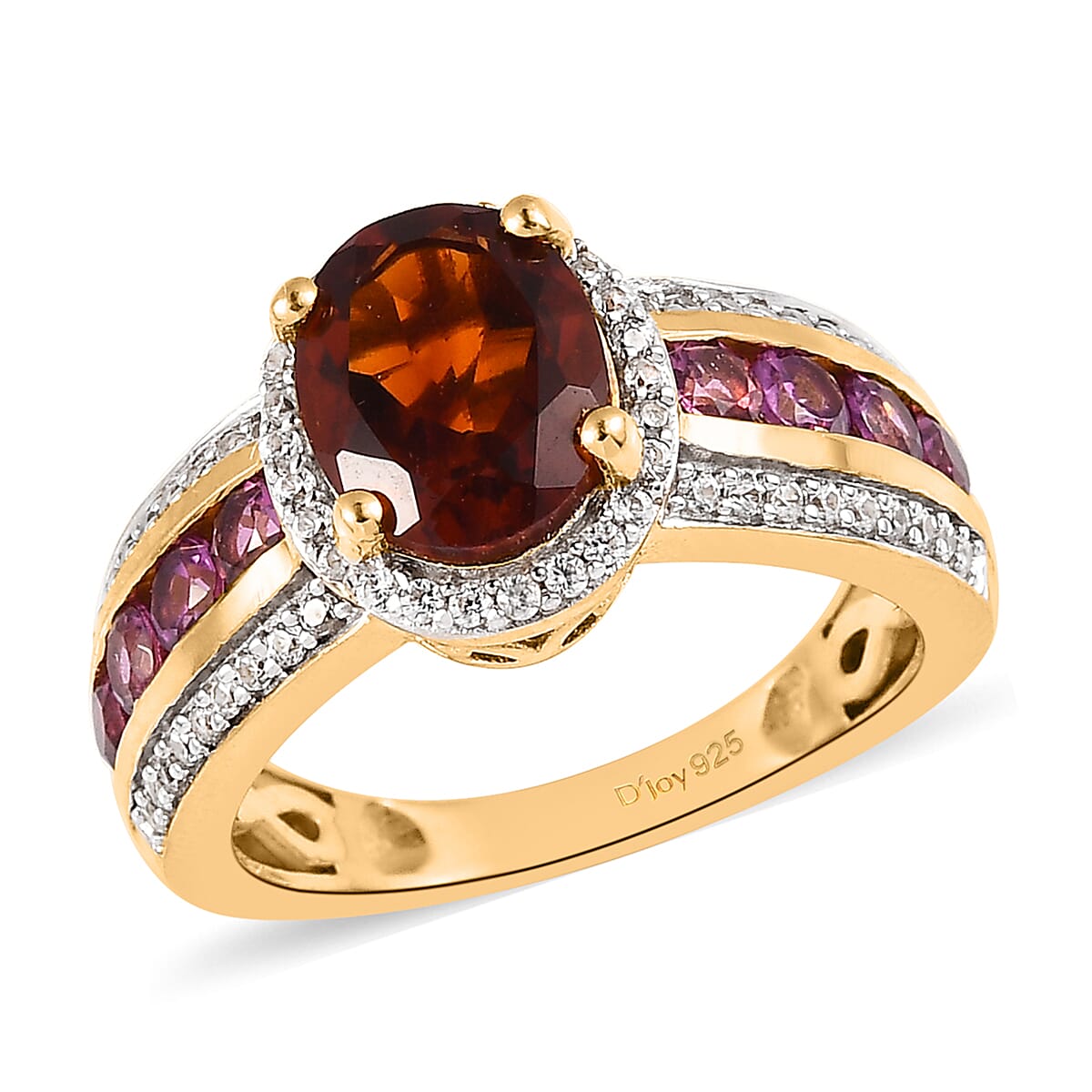 Brazilian Cherry Citrine and Multi Gemstone Ring in Vermeil Yellow Gold Over Sterling Silver 2.85 ctw