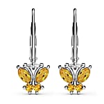 Brazilian Citrine 0.65 ctw Dangle Drop Earrings in Stainless Steel Sterling Silver, Citrine Butterfly Earrings