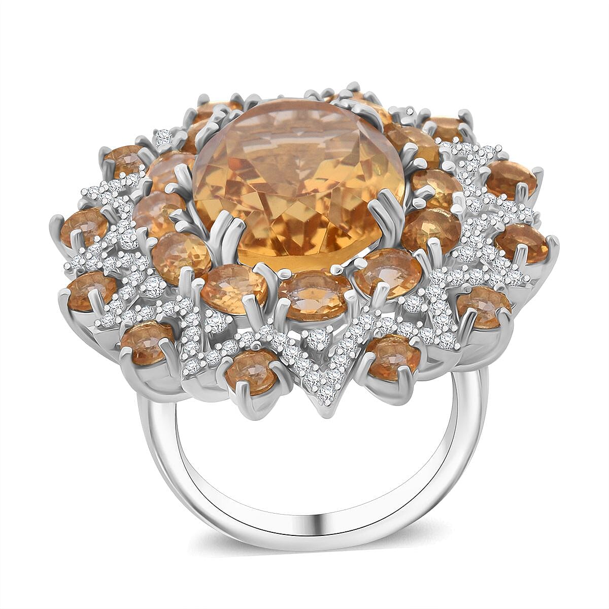 Brazilian Citrine and White Zircon 13.20 ctw Eclipse Royale Ring in Rhodium Over Sterling Silver (Size 6.0)