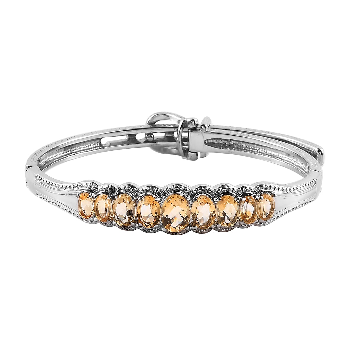 Brazilian Citrine Bangle Bracelet With Adjustable Lock in Stainless Steel (7.25 In) 6.10 ctw
