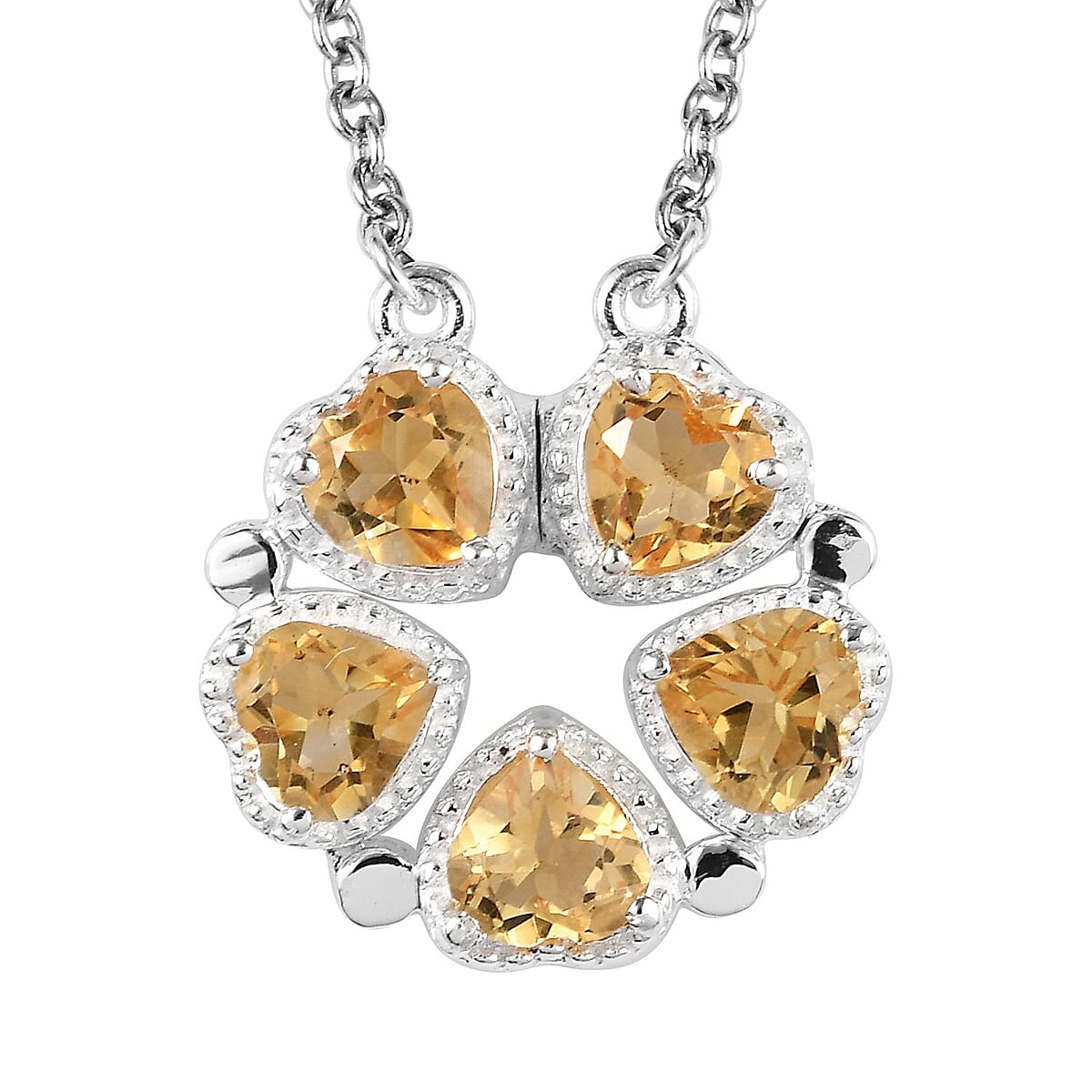 Brazilian Citrine Heart Shape Openable Necklace 18 Inches in Stainless Steel and Sterling Silver 2.15 ctw