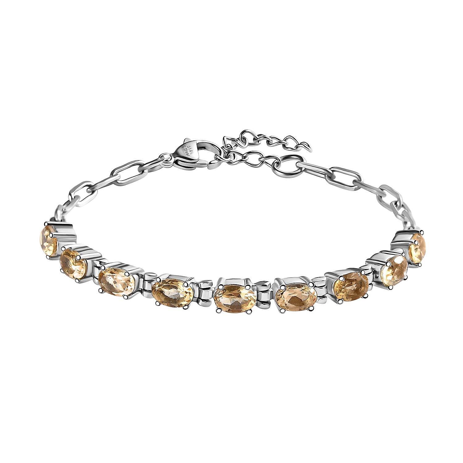Brazilian Citrine Paper Clip Chain Bracelet in Platinum Bond and Stainless Steel (6.5-8.0In) 3.90 ctw