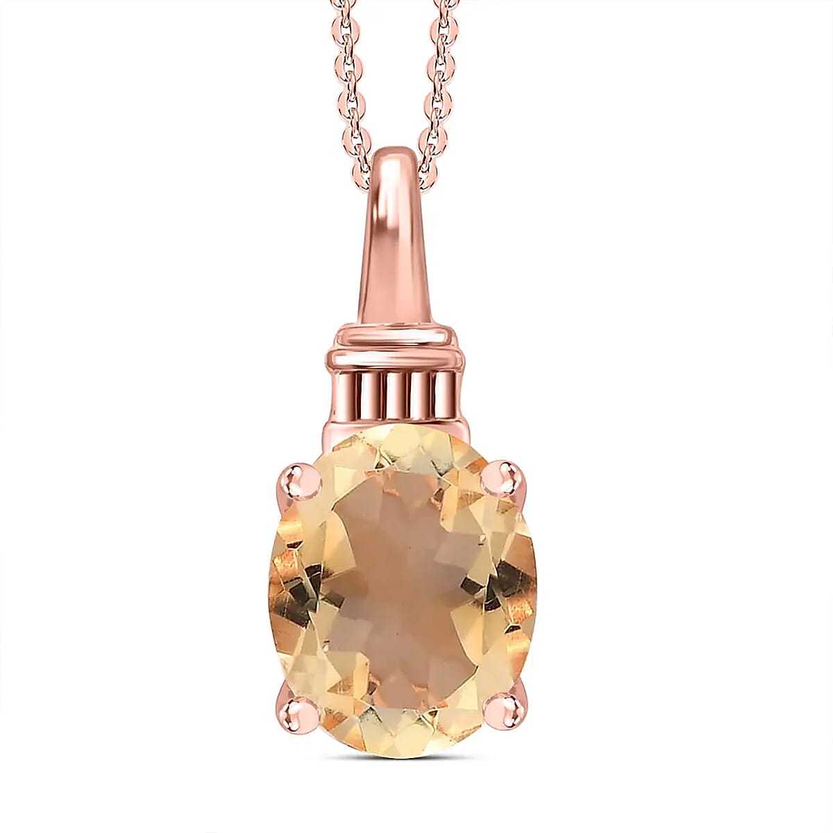 Brazilian Citrine Pendant Necklace 20 Inches in Vermeil Rose Gold Over Sterling Silver 2.50 ctw