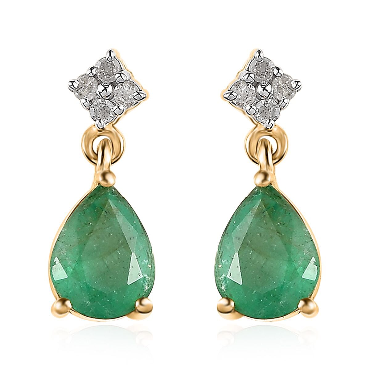 Brazilian Emerald and Diamond Drop Earrings in Vermeil Yellow Gold Over Sterling Silver 2.10 ctw