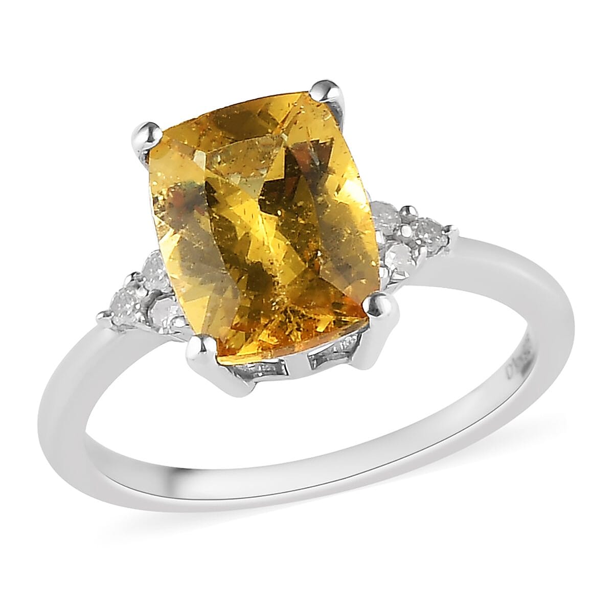 Brazilian Golden Apatite and Diamond Ring in Platinum Over Sterling Silver (Size 10.0) 2.35 ctw