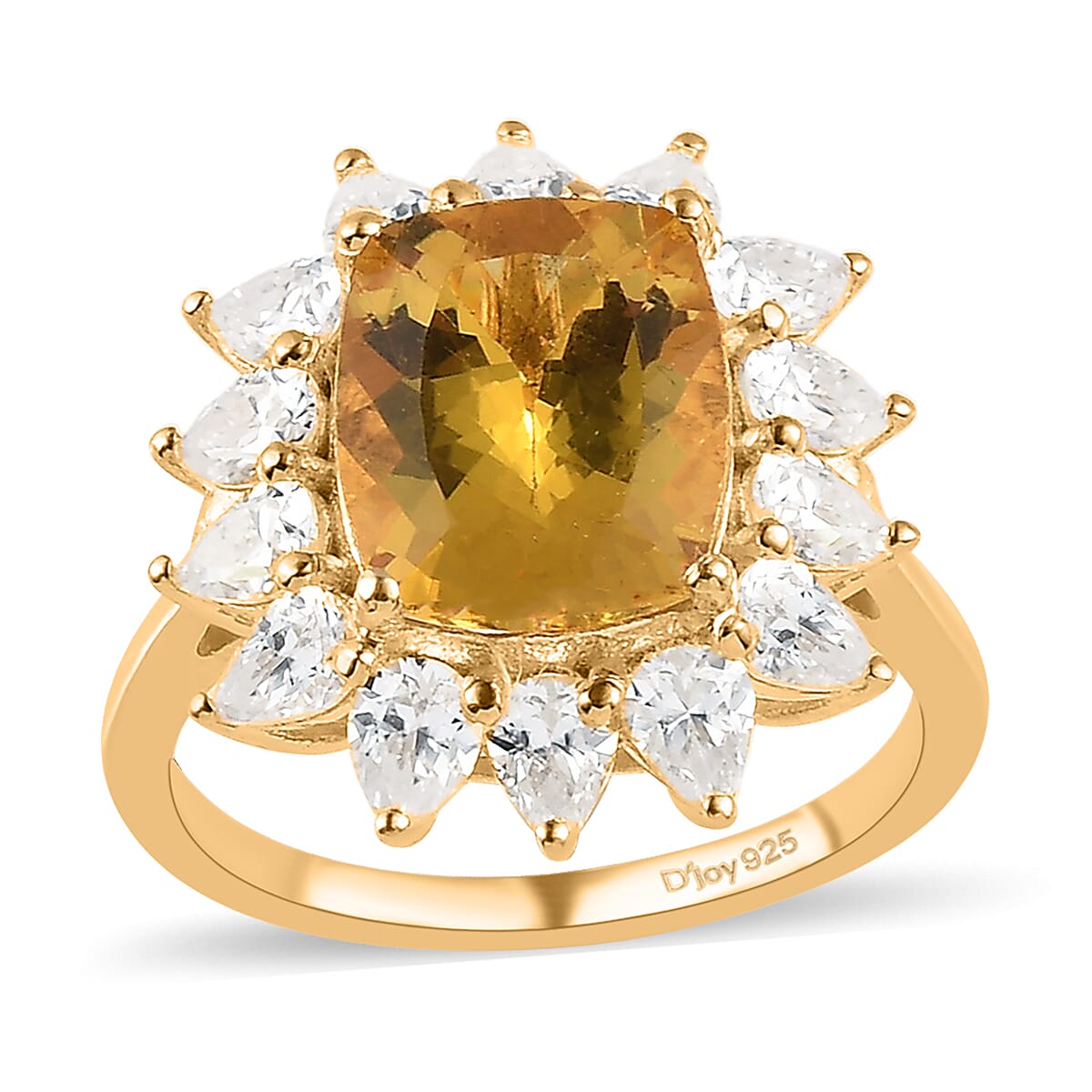 Brazilian Golden Apatite and Moissanite Sunburst Ring in Vermeil Yellow Gold Over Sterling Silver (Size 7.0) 6.50 ctw