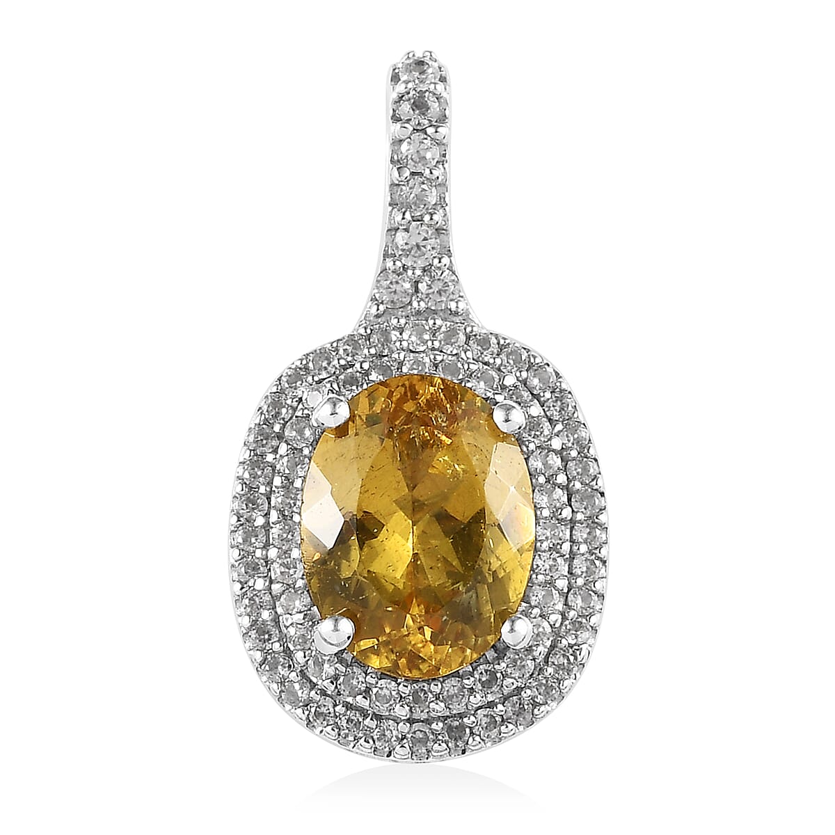 Brazilian Golden Apatite and White Zircon Pendant in Platinum Over Sterling Silver 2.15 ctw