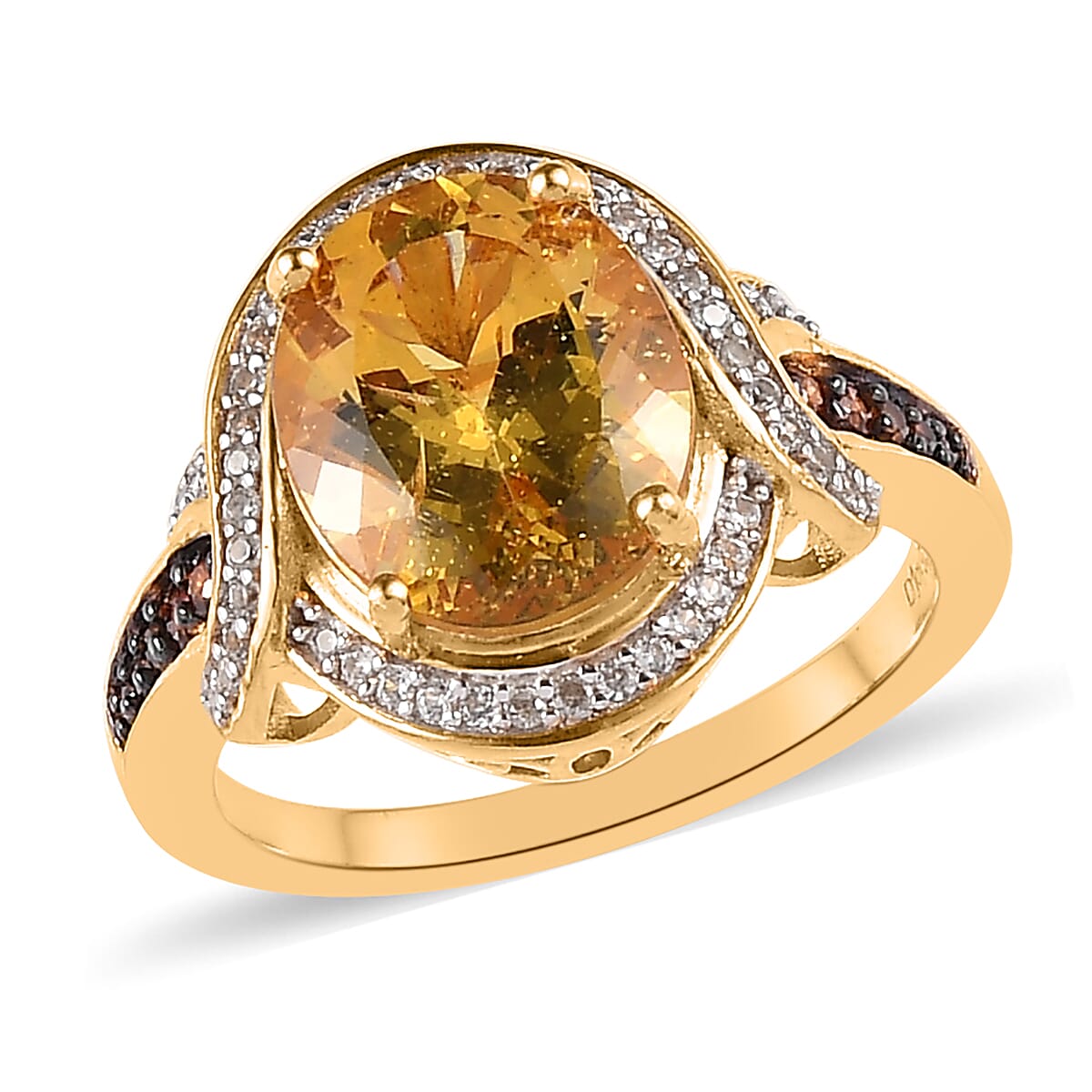 Brazilian Golden Apatite, Natural White and Coffee Zircon Ring in Vermeil Yellow Gold Over Sterling Silver (Size 10.0) 4.50 ctw