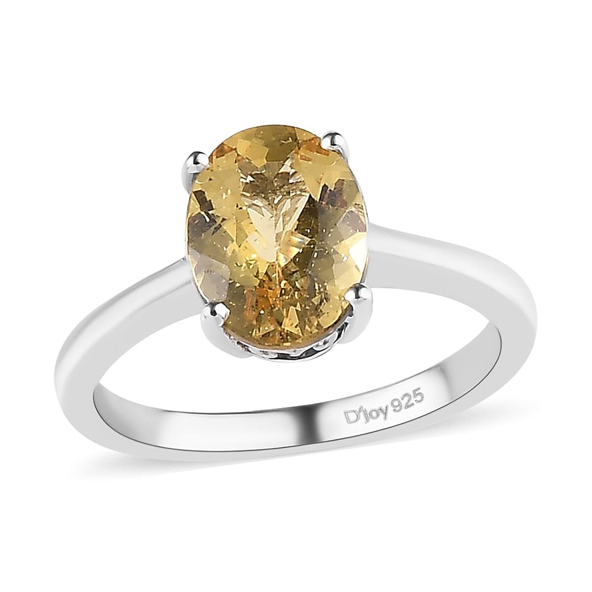 Brazilian Golden Apatite Solitaire Ring in Platinum Over Sterling Silver (Size 8.0) 1.85 ctw