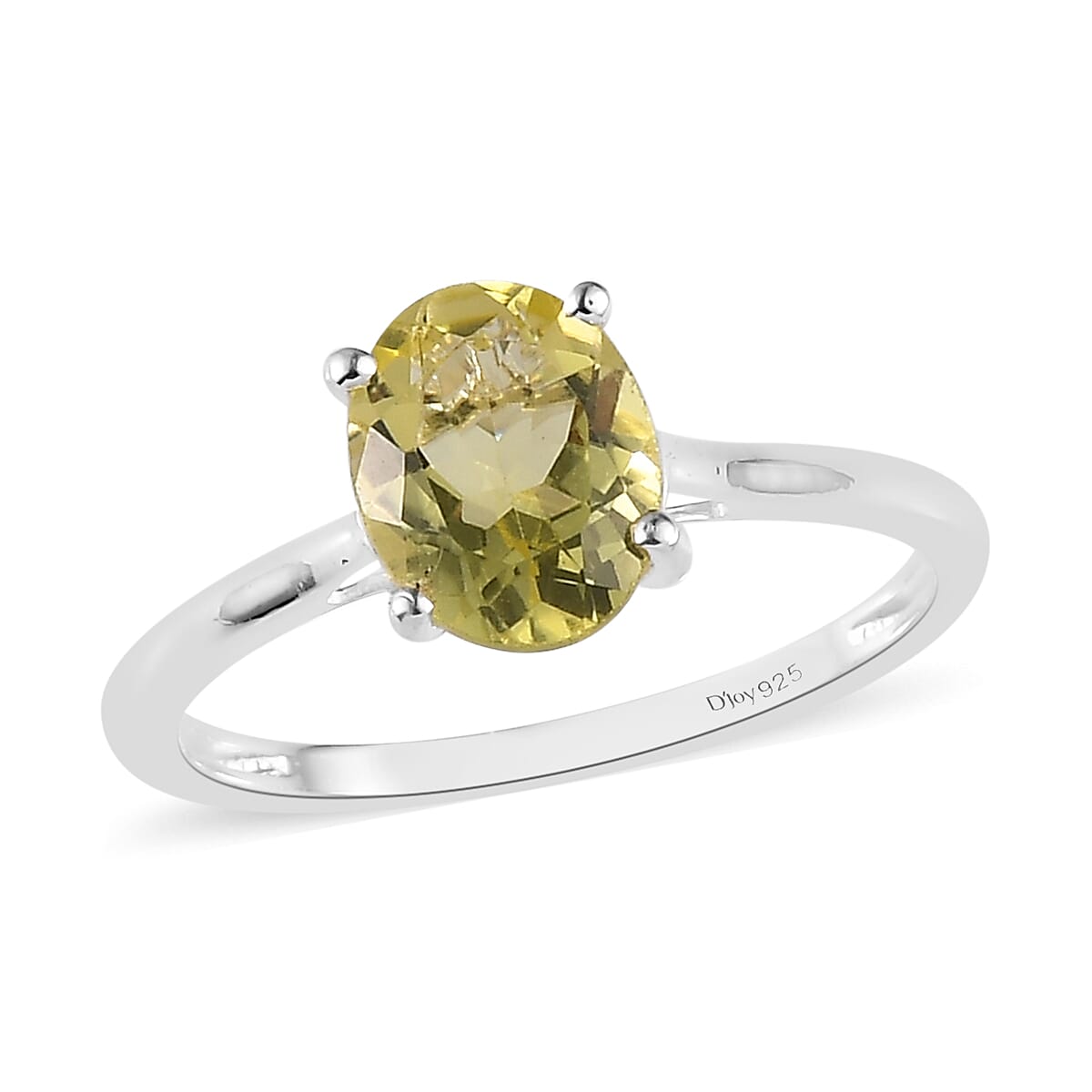 Brazilian Green Gold Quartz Solitaire Ring in Sterling Silver (Size 10.0) 1.65 ctw