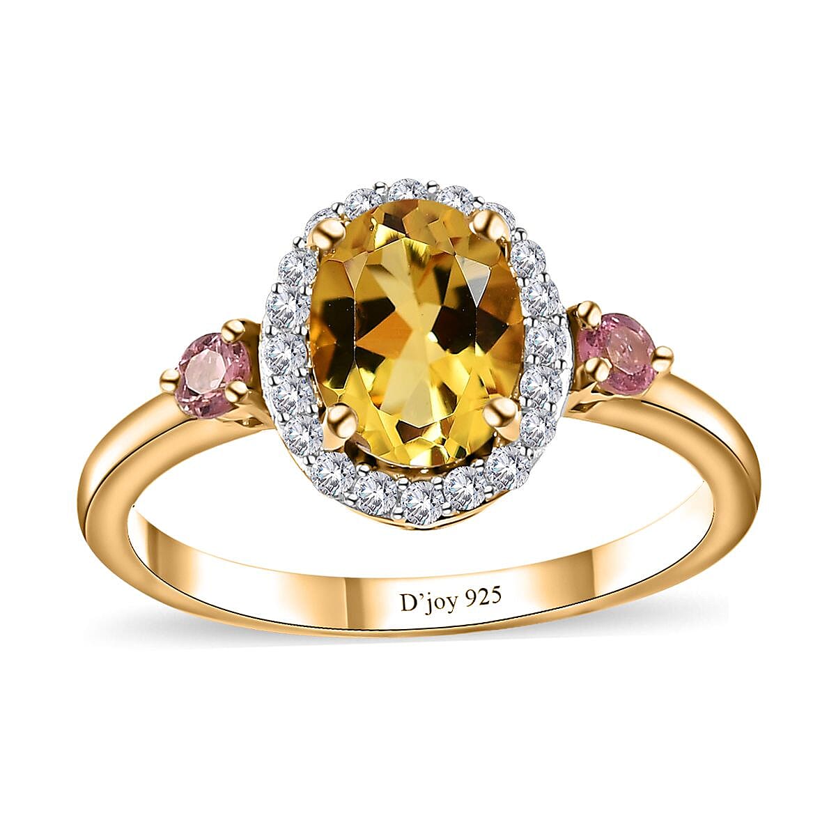 Brazilian Heliodor and Multi Gemstone Halo Ring in Vermeil Yellow Gold Over Sterling Silver (Size 9.0) 1.50 ctw