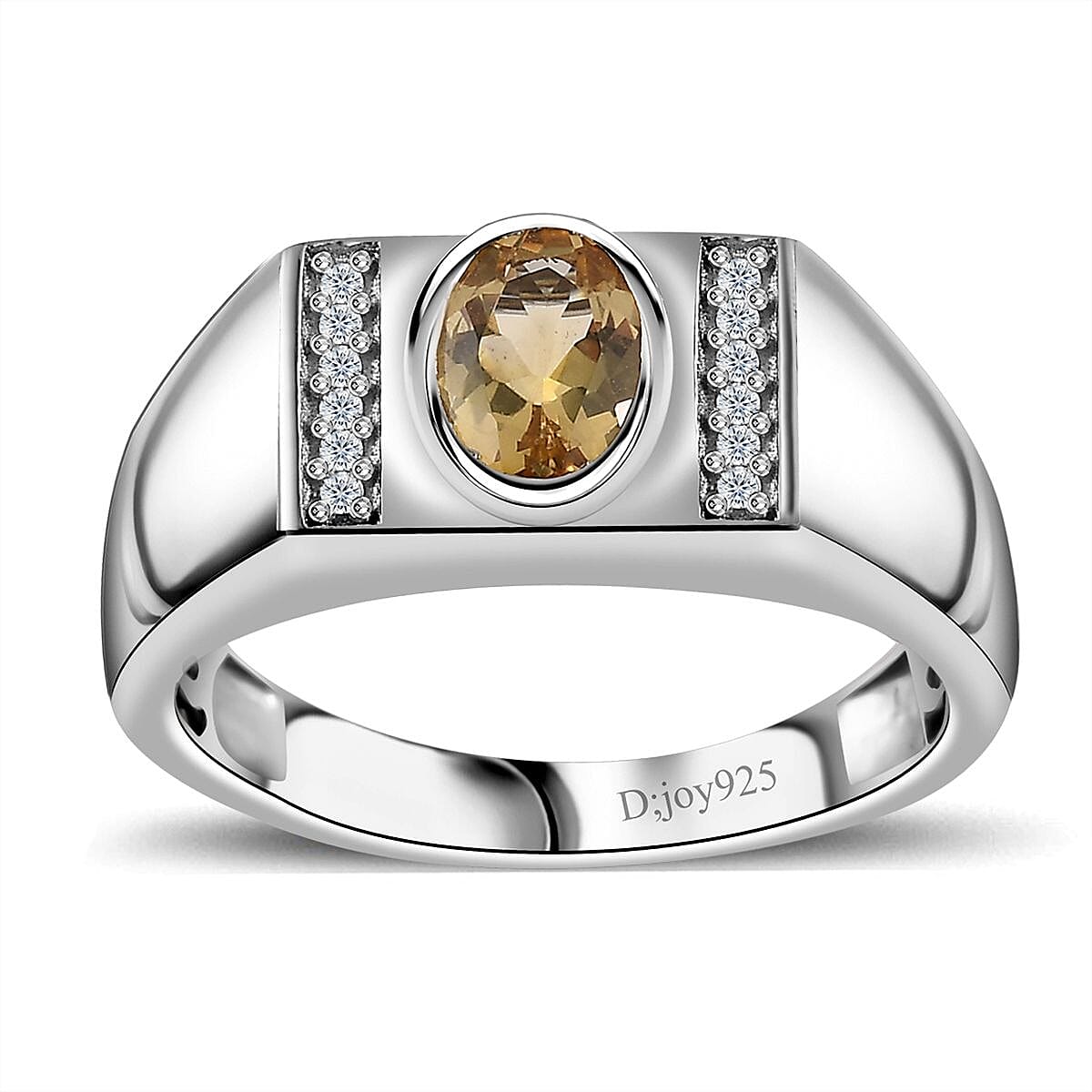 Brazilian Heliodor and White Zircon Men's Ring in Platinum Over Sterling Silver (Size 13.0) 0.85 ctw