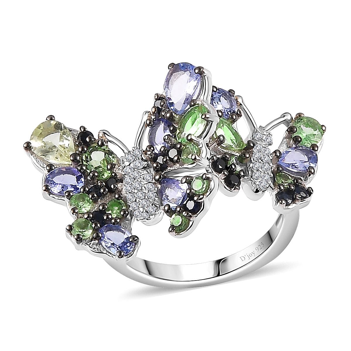 Brazilian Mint Garnet and Multi Gemstone Butterfly Ring in Rhodium Over Sterling Silver (Size 9.0) 2.85 ctw