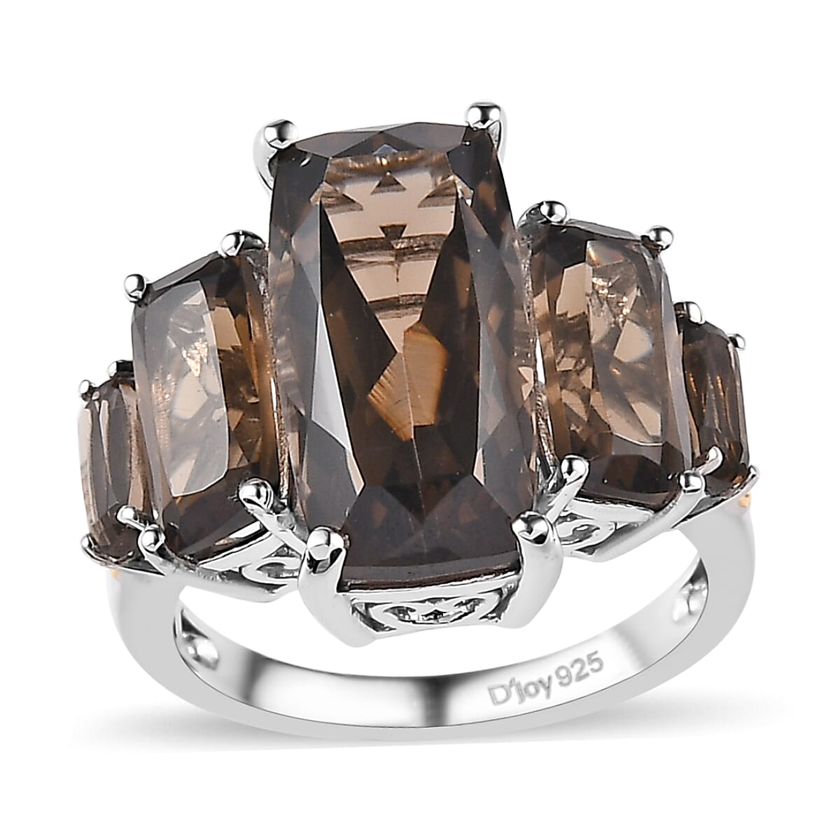 Brazilian Smoky Quartz 5 Stone Ring in Vermeil YG and Platinum Over Sterling Silver (Size 9.0) 10.50 ctw