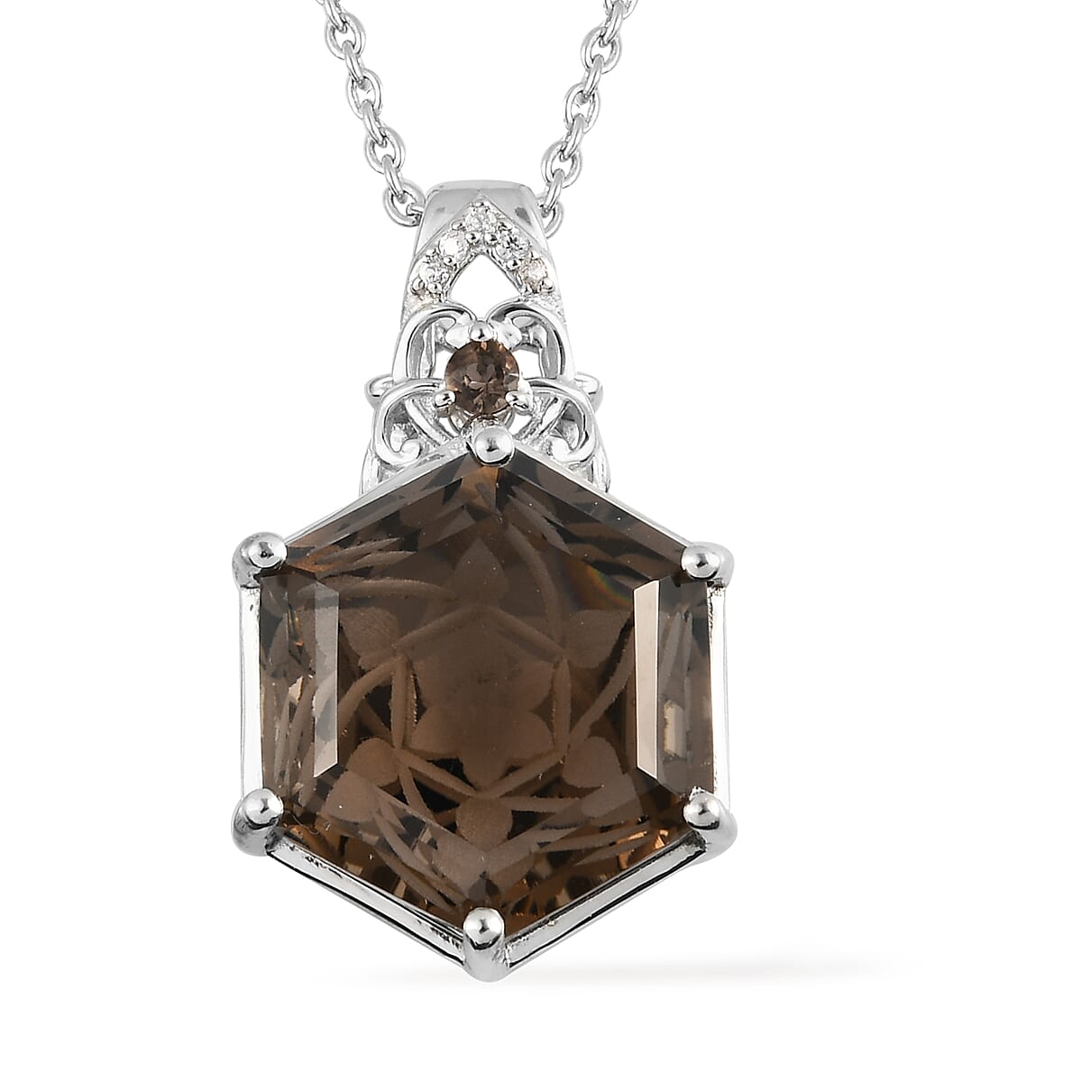 Brazilian Smoky Quartz and Natural White Zircon Solitaire Pendant Necklace 20 Inches in Platinum Over Sterling Silver 13.10 ctw