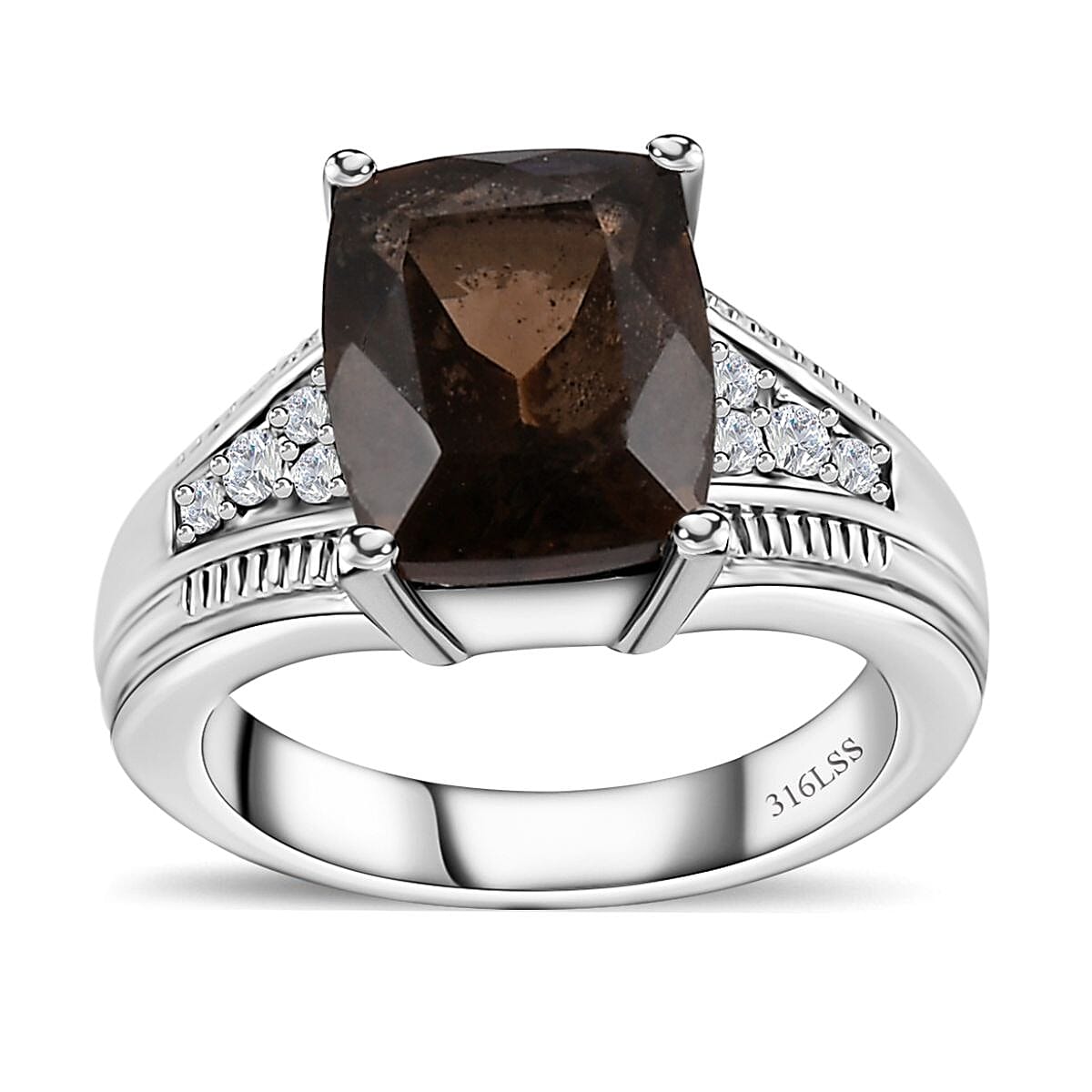 Brazilian Smoky Quartz and White Zircon 4.25 ctw Ring in Stainless Steel (Size 7.0)