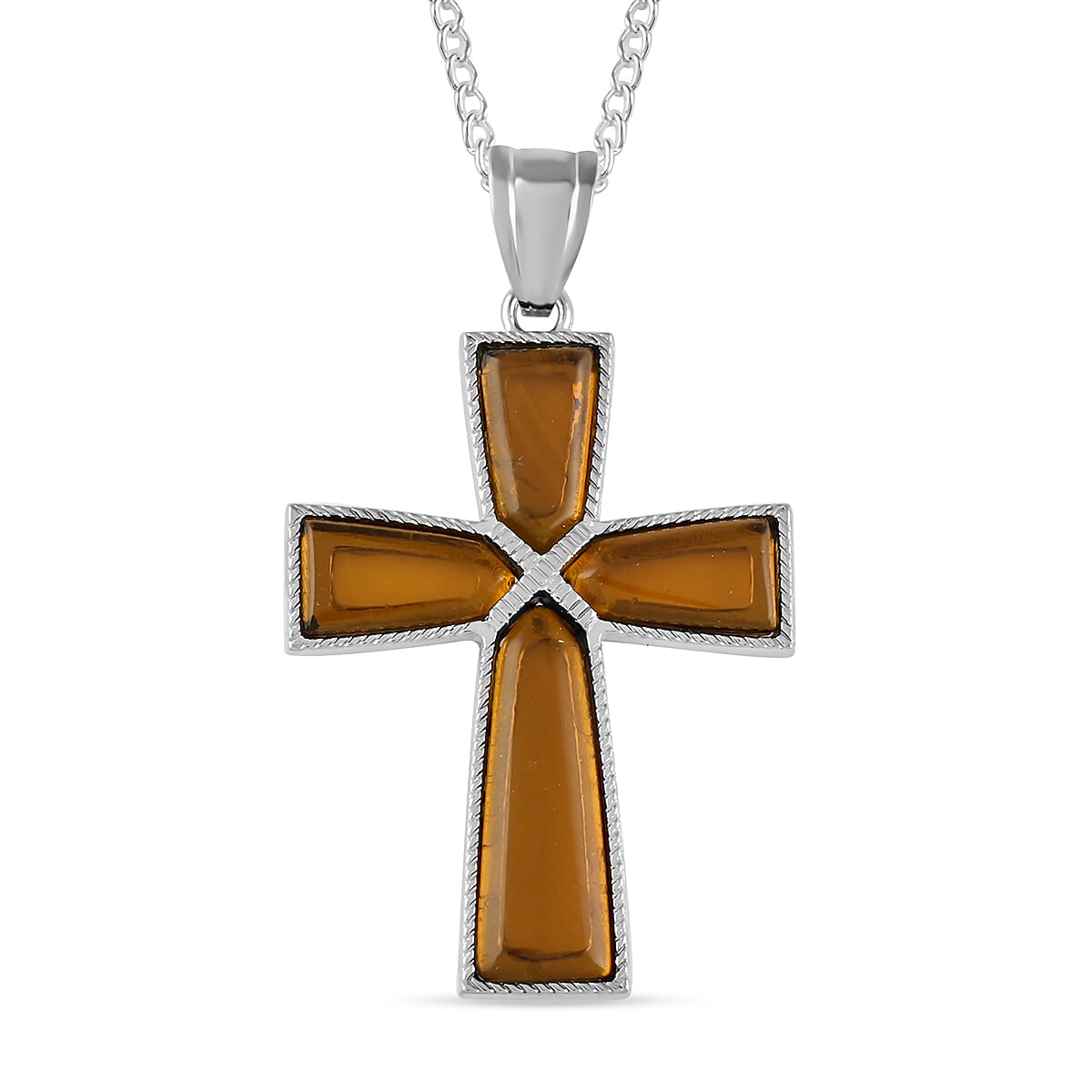 Inspired with the spiritual theme, this genuine gemstone cross pendant necklace symbolizes faith, good luck, and fortune. Fancy-shaped genuine gemstone bezel set on horizontal and vertical lines making a cross symbol surrounded by a Tibetian style border. Wearing a necklace featuring a cross represents that person's beliefs, provide comfort, and promotes awareness. This artisan-crafted cross pendant is crafted in silvertone-plated brass. An 18inches princess-length necklace falls above the collarbone.