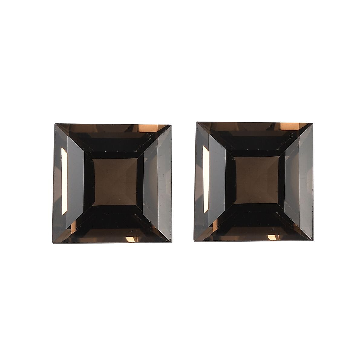 Enhance your jewelry collection with this set of two Brazilian smoky quartz gemstones, each renowned for their deep, smoke-like hues and earthy appeal. These square-shaped, precisely faceted stones are perfect for custom jewelry, offering a rare blend of natural beauty and meticulous craftsmanship.