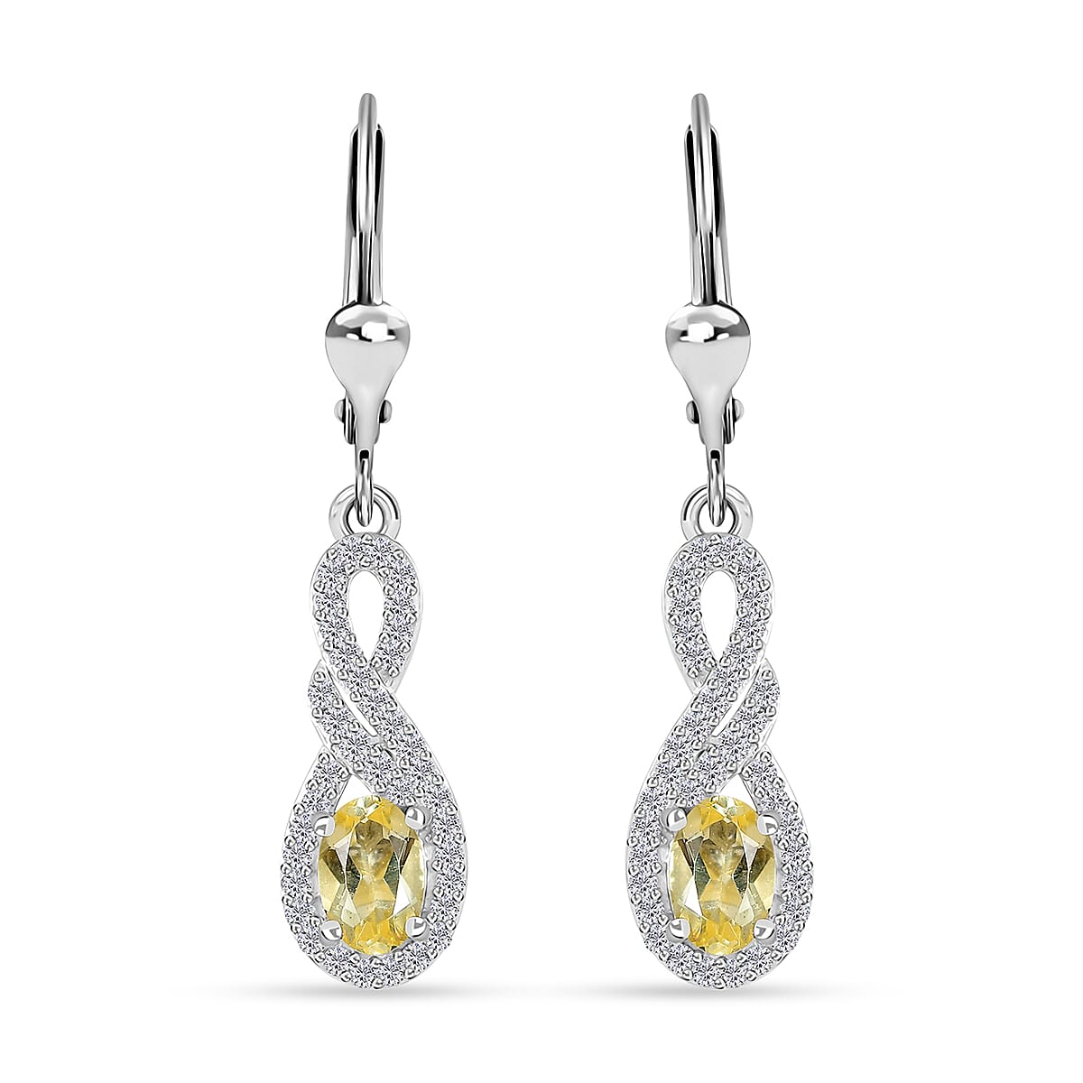 Brazilian Sunfire Beryl and White Zircon Lever Back Earrings in Platinum Over Sterling Silver 1.50 ctw