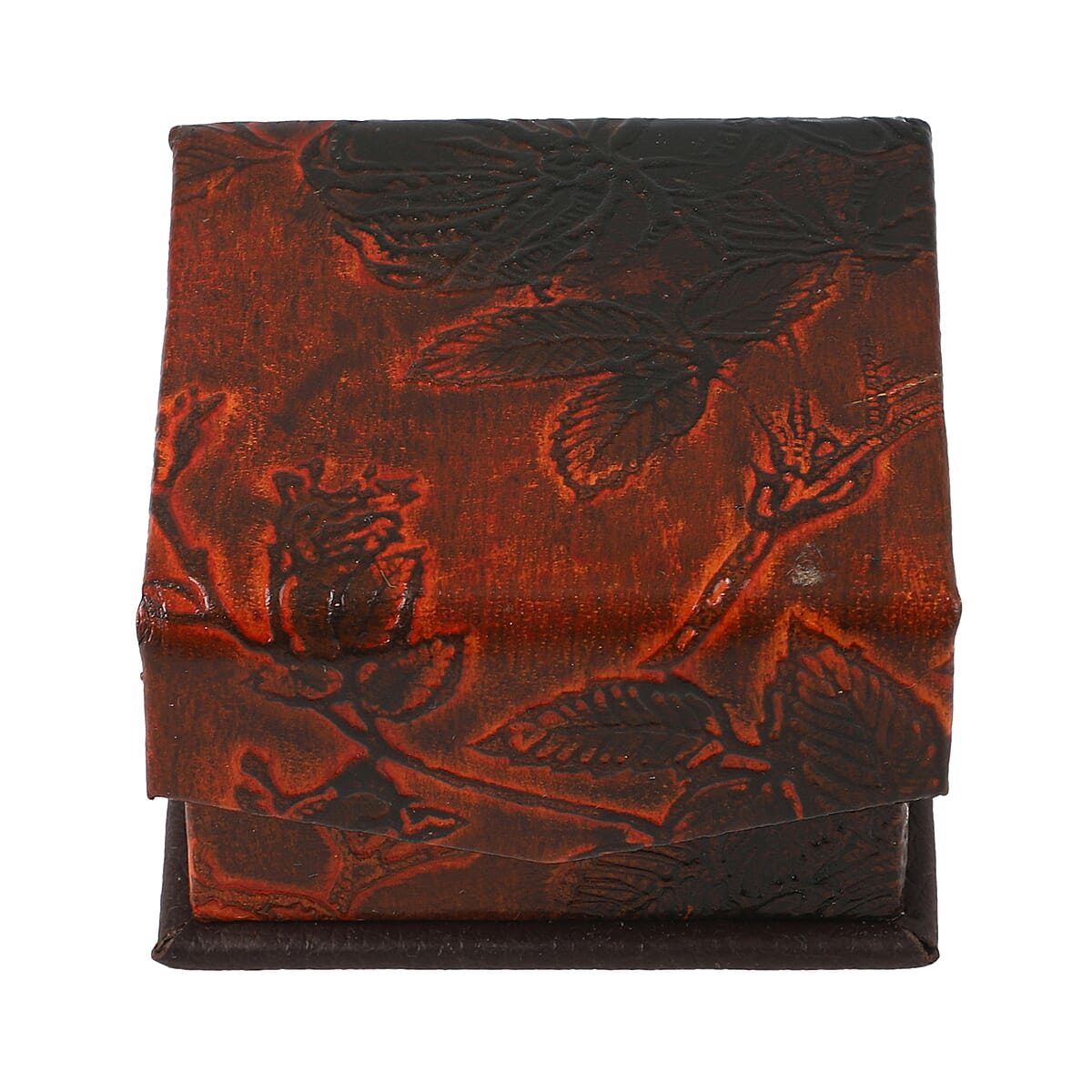 Brown Genuine Goat Leather Embossed Ring Box