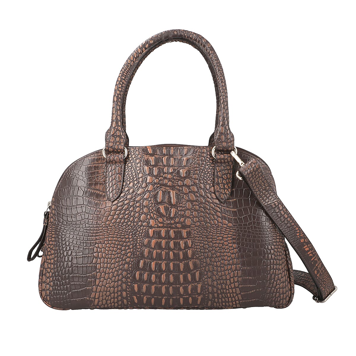 Brown Genuine Leather Croco Embossed Shoulder Bag
