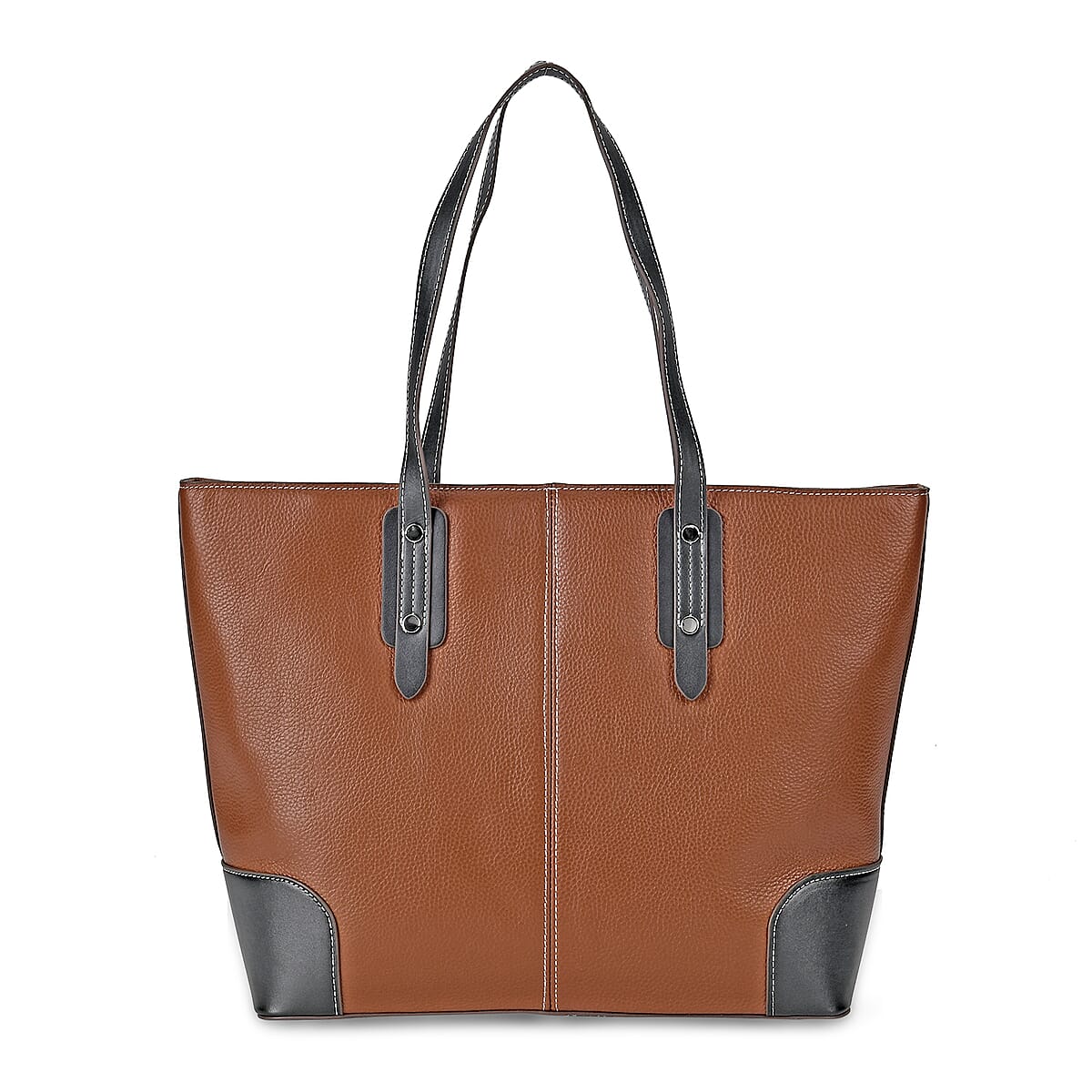 Brown Genuine Leather Tote Bag with Double Handles Drop