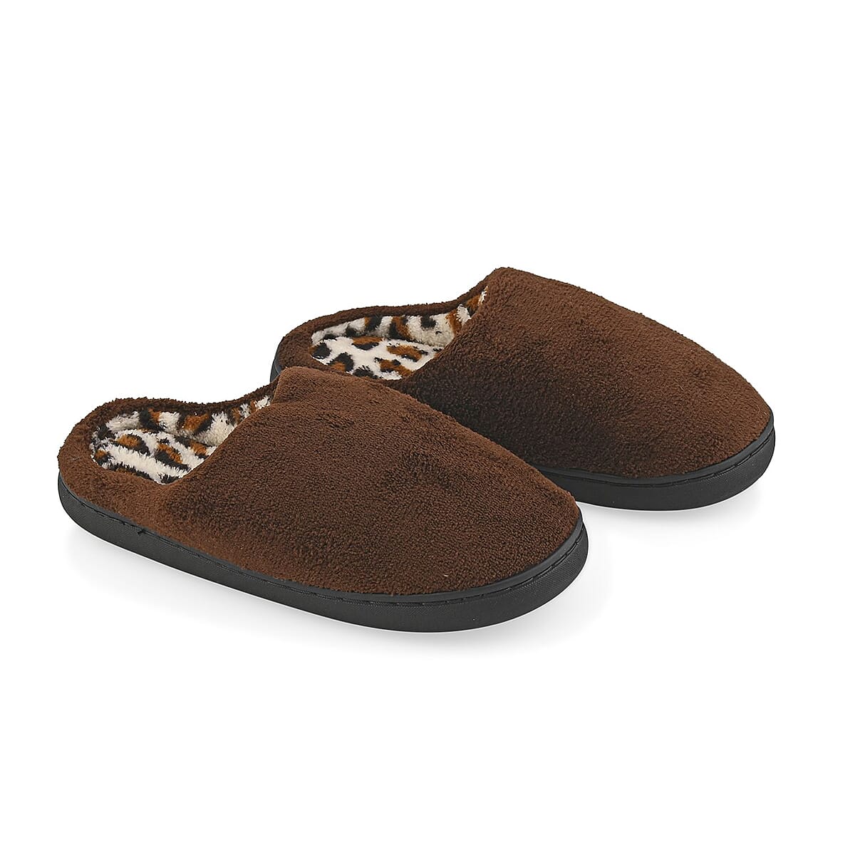 Brown Micro Velour Leopard Lined Slippers with Memory Foam– S Womens Size 5/6