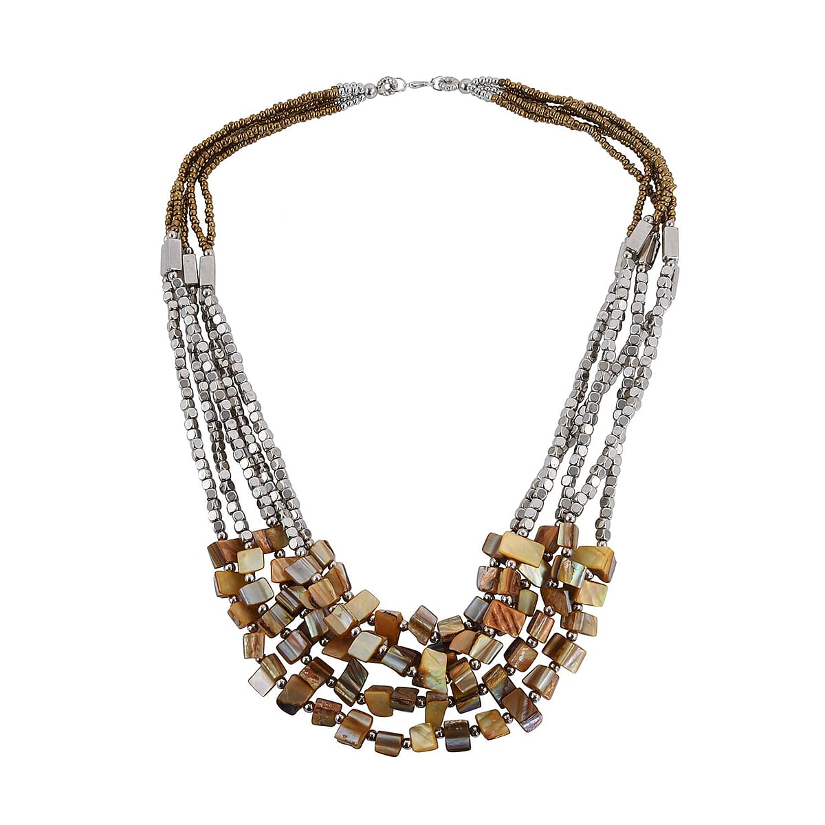 Brown Seed Beaded Stone Multi Strand Necklace 22 Inches