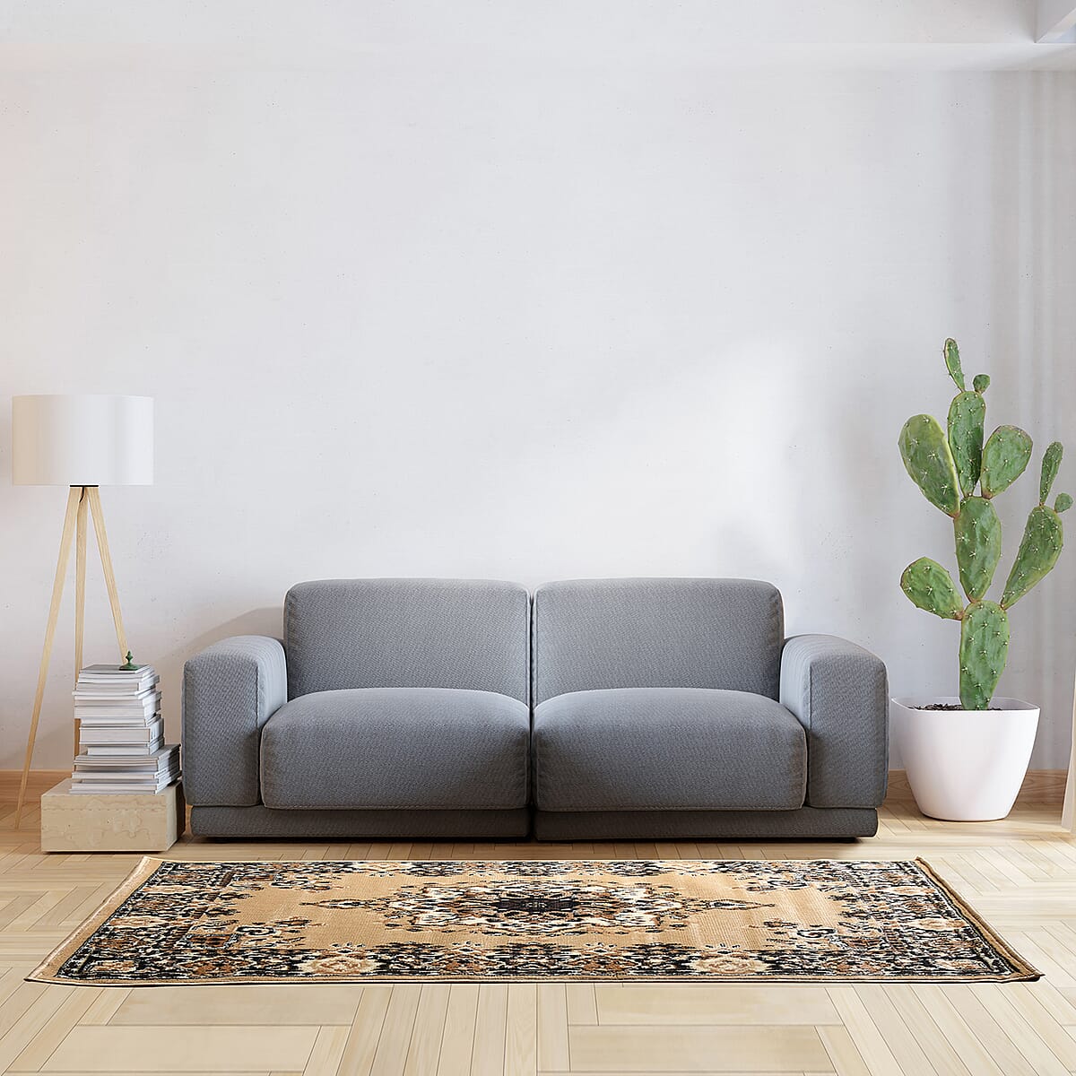 Upgrade your home interiors with this beautifully designed polypropylene rug. This rug is made with polypropylene material and has an anti-slip backing to give durability and comfort. It matches any décor type easily. This rug is ideal for placing in your bedroom, hall, guestroom, restroom, or more.