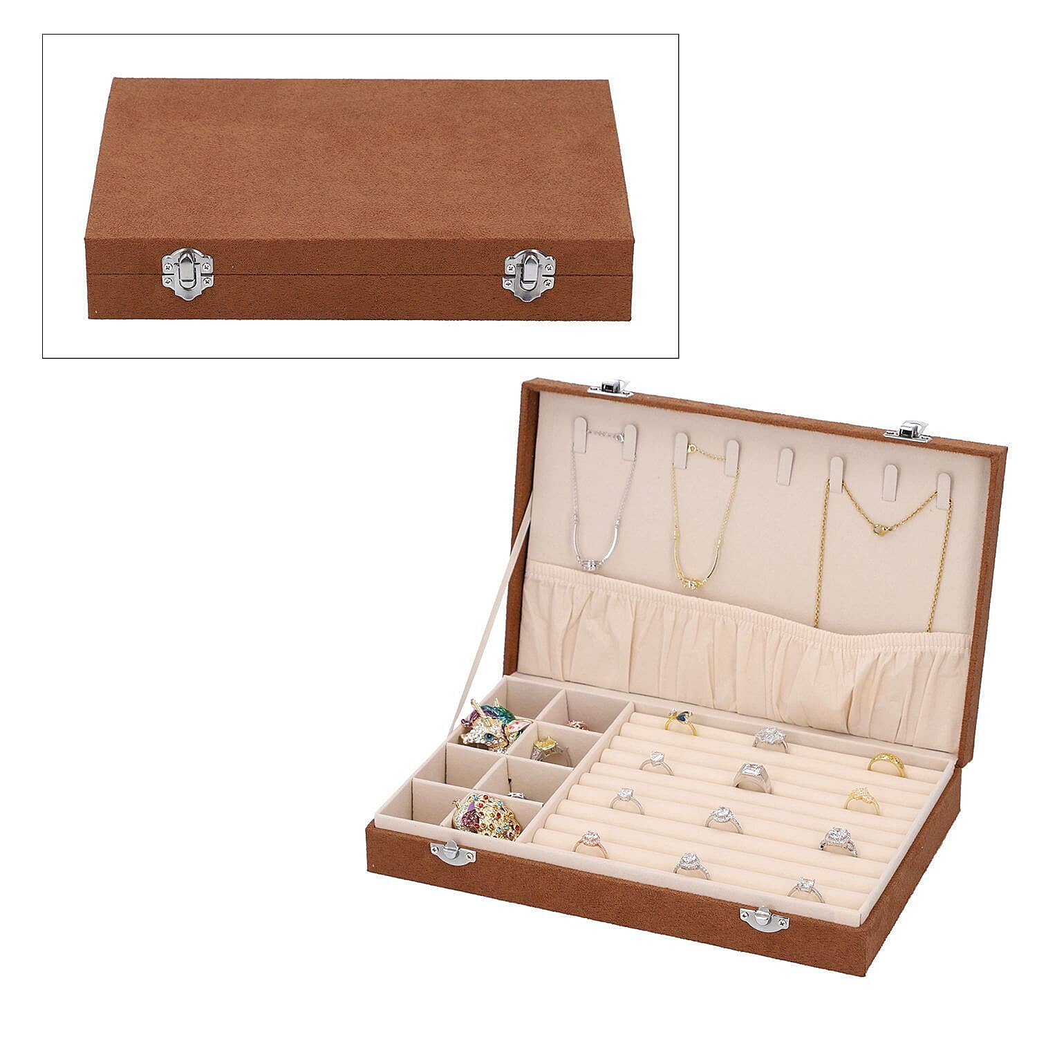 Brown Velvet Jewelry Box with Anti Tarnish Lining & Lock, Anti Tarnish Jewelry Case, Jewelry Organizer, Jewelry Storage Box (8 Necklace Hooks, 8 Earrings/Pendant Sections and 10 Rings Slots)