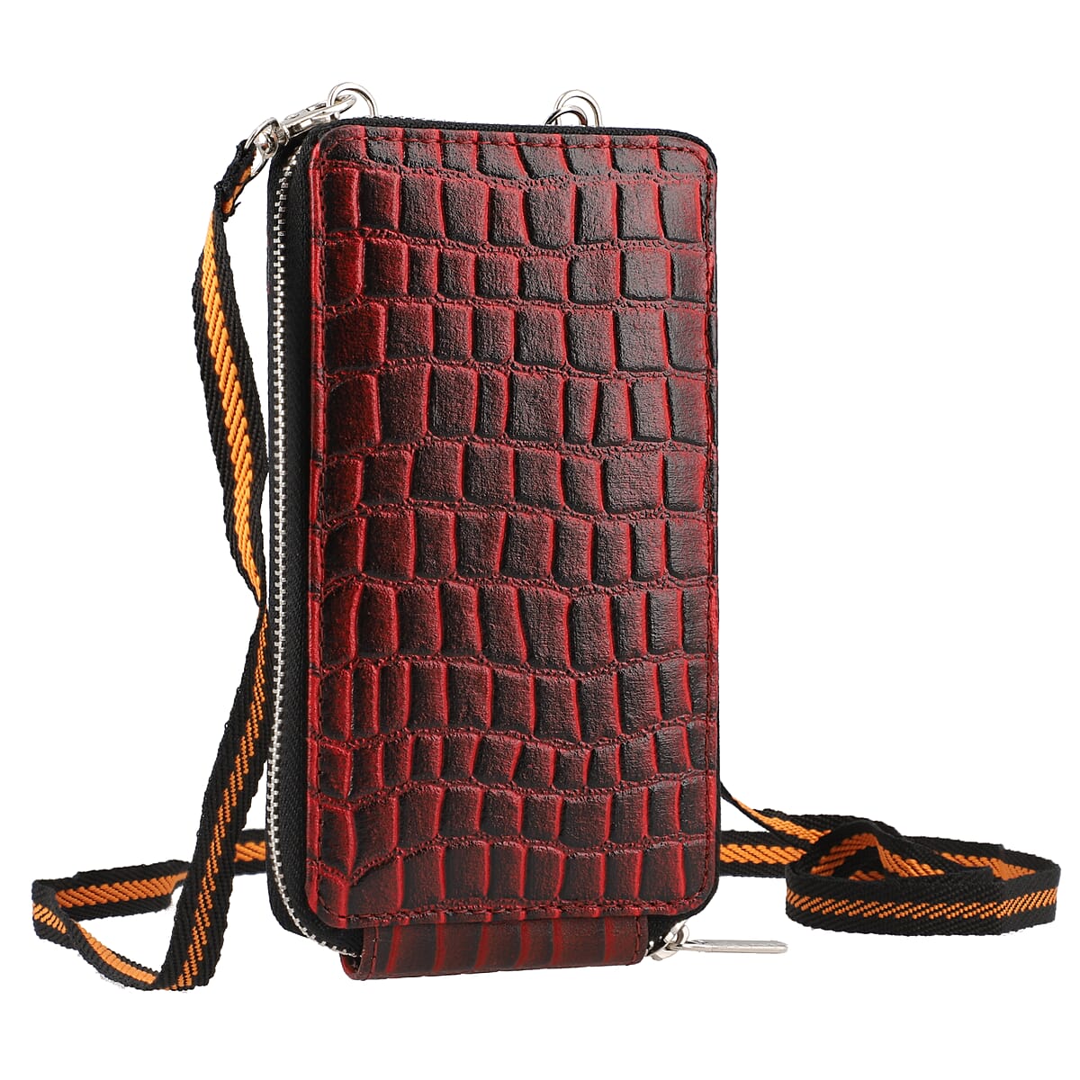 Burgundy Crocodile Embossed RFID Genuine Leather Crossbody Bag for Women with Wristlet Handle | Shoulder Purse | Crossbody Handbags | Designer Crossbody | Leather Handbags