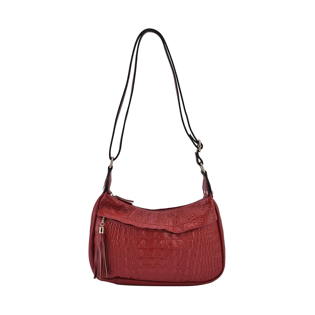 Burgundy Crocodile Pattern Genuine Leather Crossbody Bag with Shoulder Strap