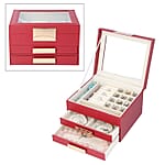 Introducing a three-layer faux leather jewelry box - an elegantly crafted storage solution designed to protect, organize, and display your precious jewelry collection. Exquisitely wrapped in high-quality faux leather, this jewelry organizer box boasts a sophisticated look that will complement any decor. Within the box, you'll find three layers of storage space thoughtfully designed to cater to all your jewelry storage needs. This elegant jewelry box is more than just a storage solution - it's a sanctuary for your beloved jewelry pieces.