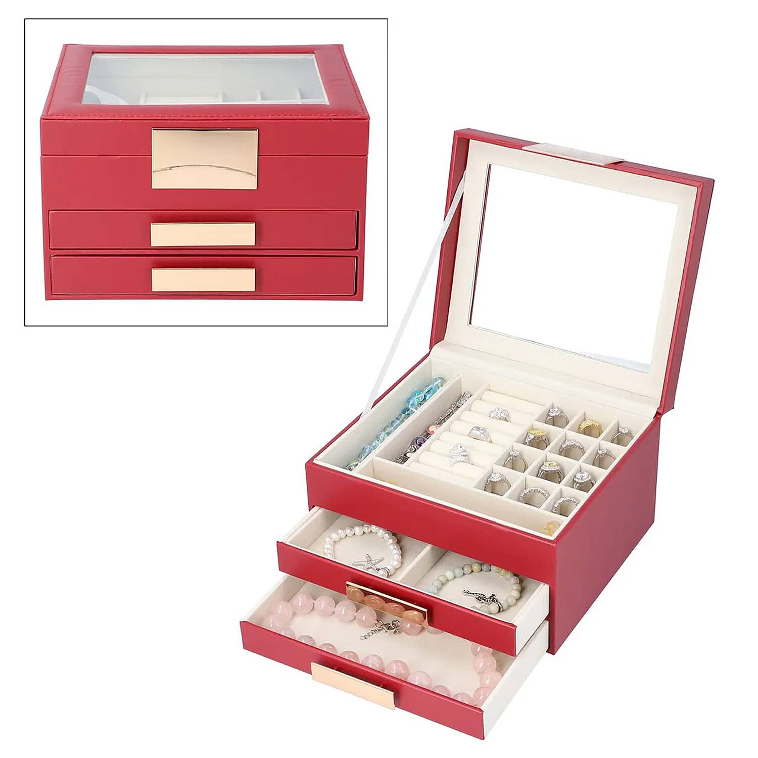 Burgundy Three Layer Faux Leather Jewelry Box with Anti Tarnish Lining and 2 Removable Tray, Jewelry Organizer Box, Travel Jewelry Box, Jewelry Storage, Travel Jewelry Organizer